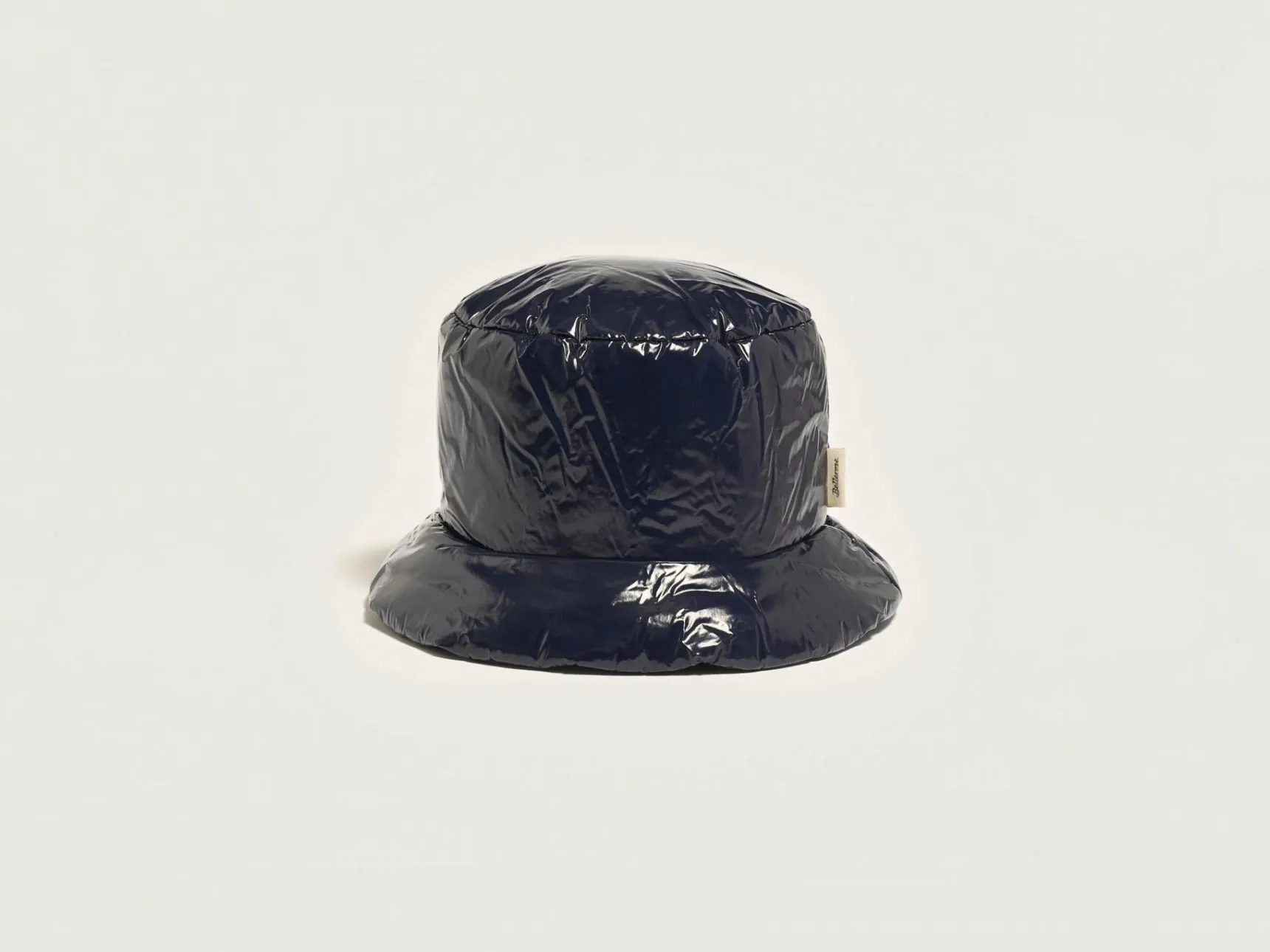 Licht gewatteerde, marineblauwe bucket hat.