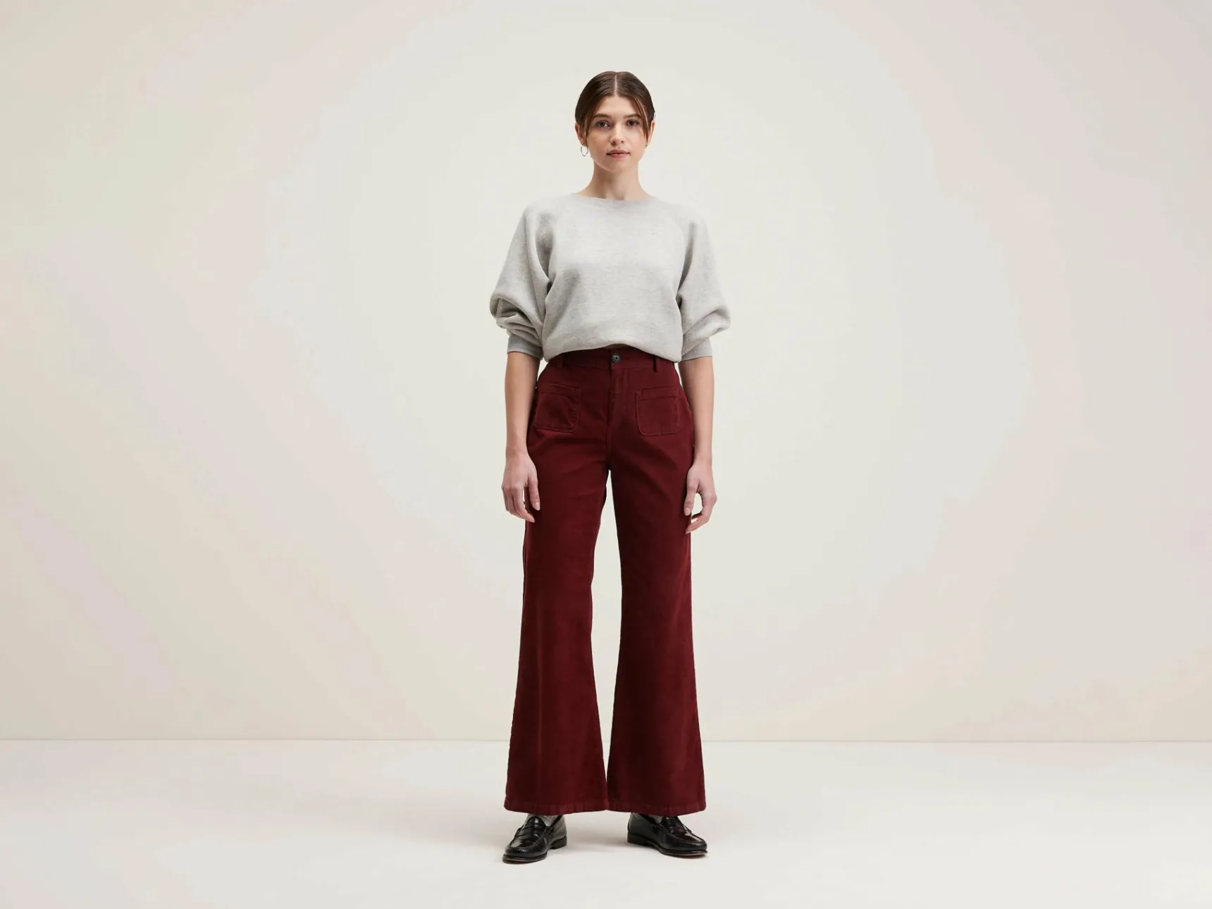 High-waist broek van rode baby corduroy stof met flared pijpen.