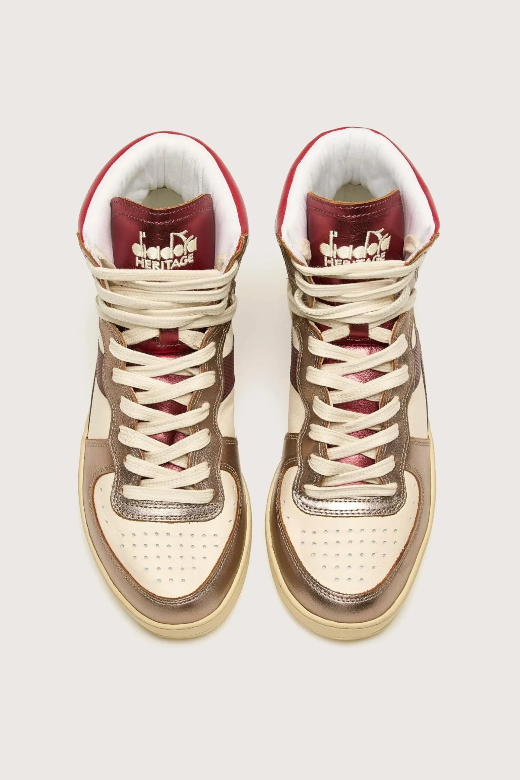 The Diadora Mi Basket Metal Mix Used heritage sneakers feature premiumfoiledfull-grain leatherwith awaxed stonewash treatment.