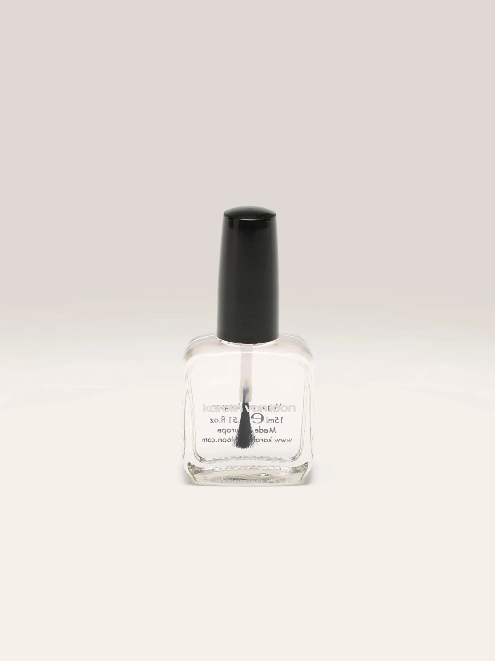 De veganistische en milieuvriendelijke Cosmic Top Coat van Karolin Van Loon beschermt, verlengt en droogt snel je nagellak.