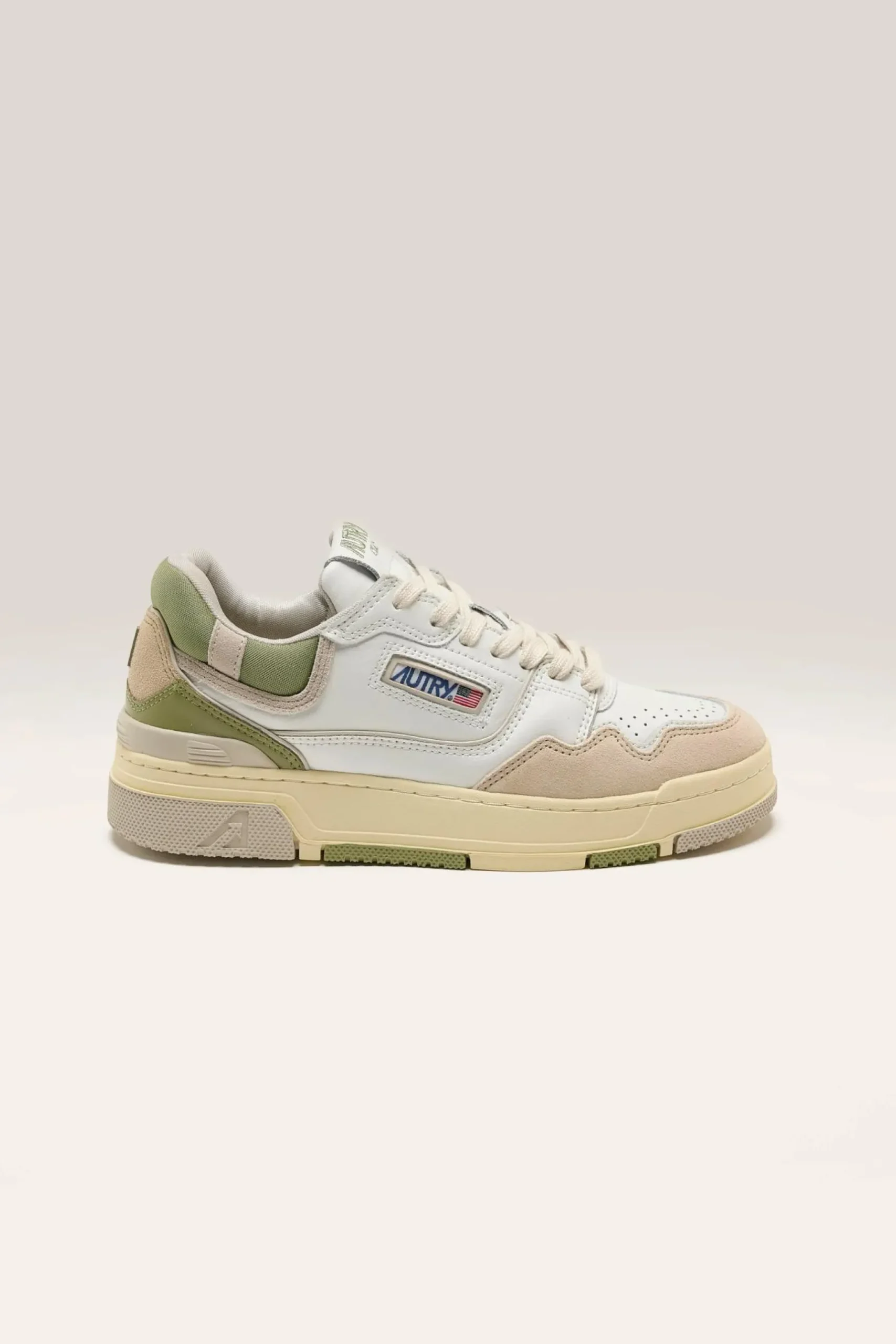 De Autry CLC Low zijn op basketbal geïnspireerde sneakers met een lederen en suède bovenwerk, een gewatteerde kraag van mesh en een verhoogde rubberen zool.