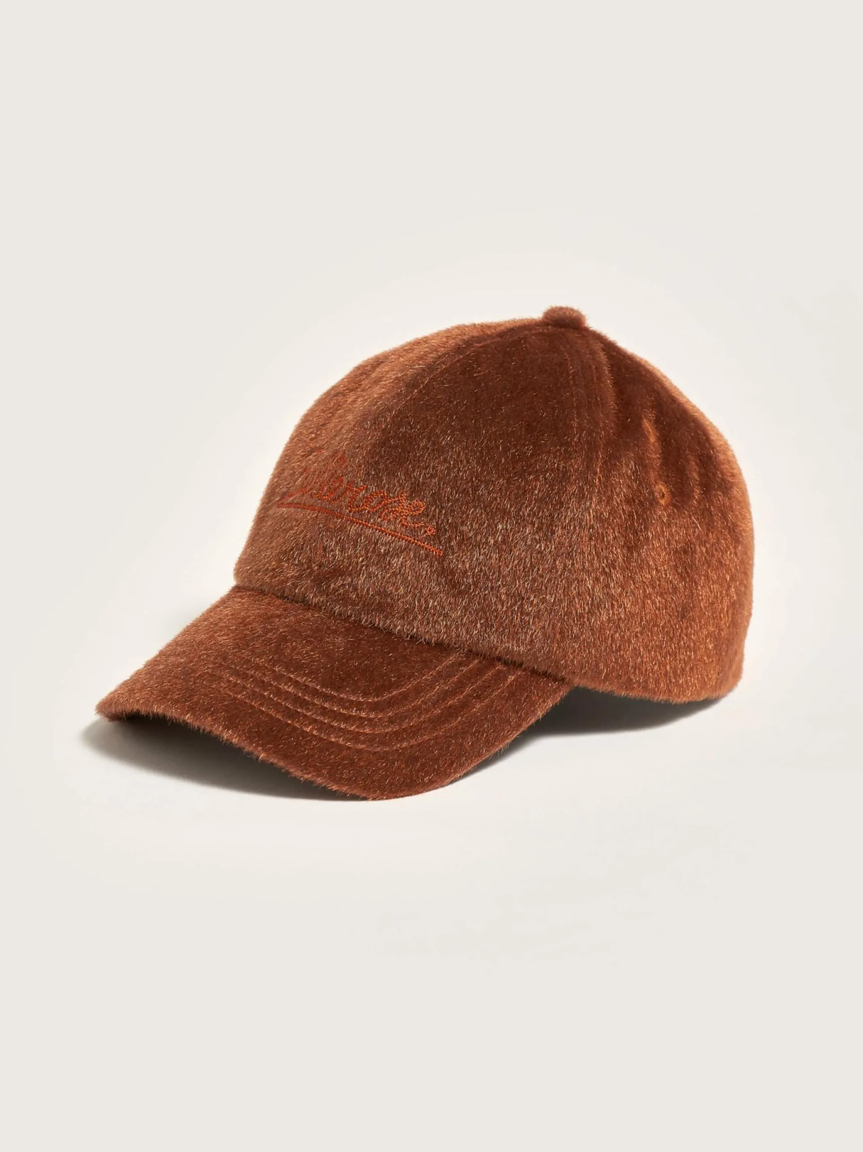 Klassieke baseball pet in koperkleurig velours, met embroidered Bellerose logo.