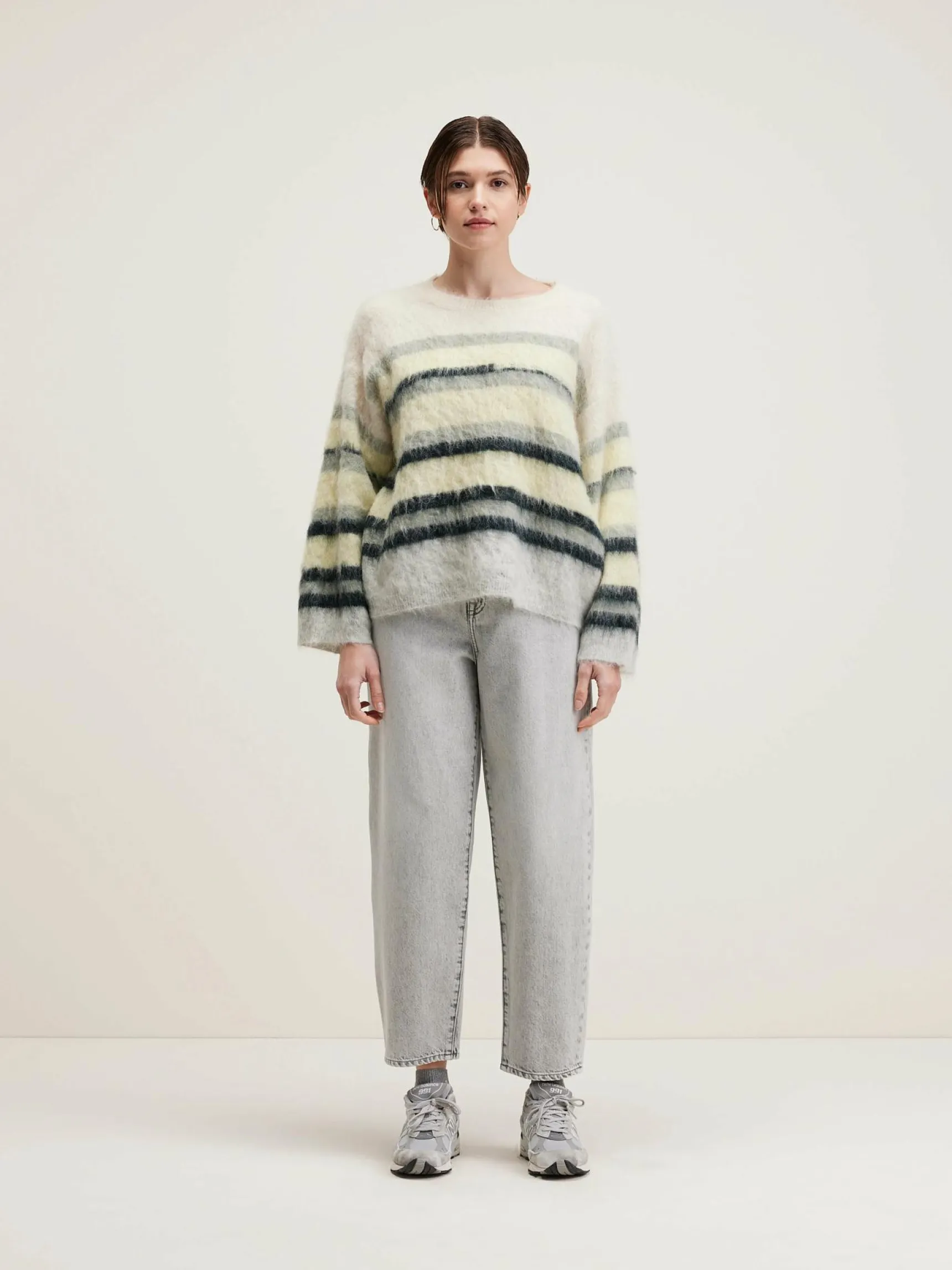 Oversizede trui met onregelmatige strepen, in wolmix.