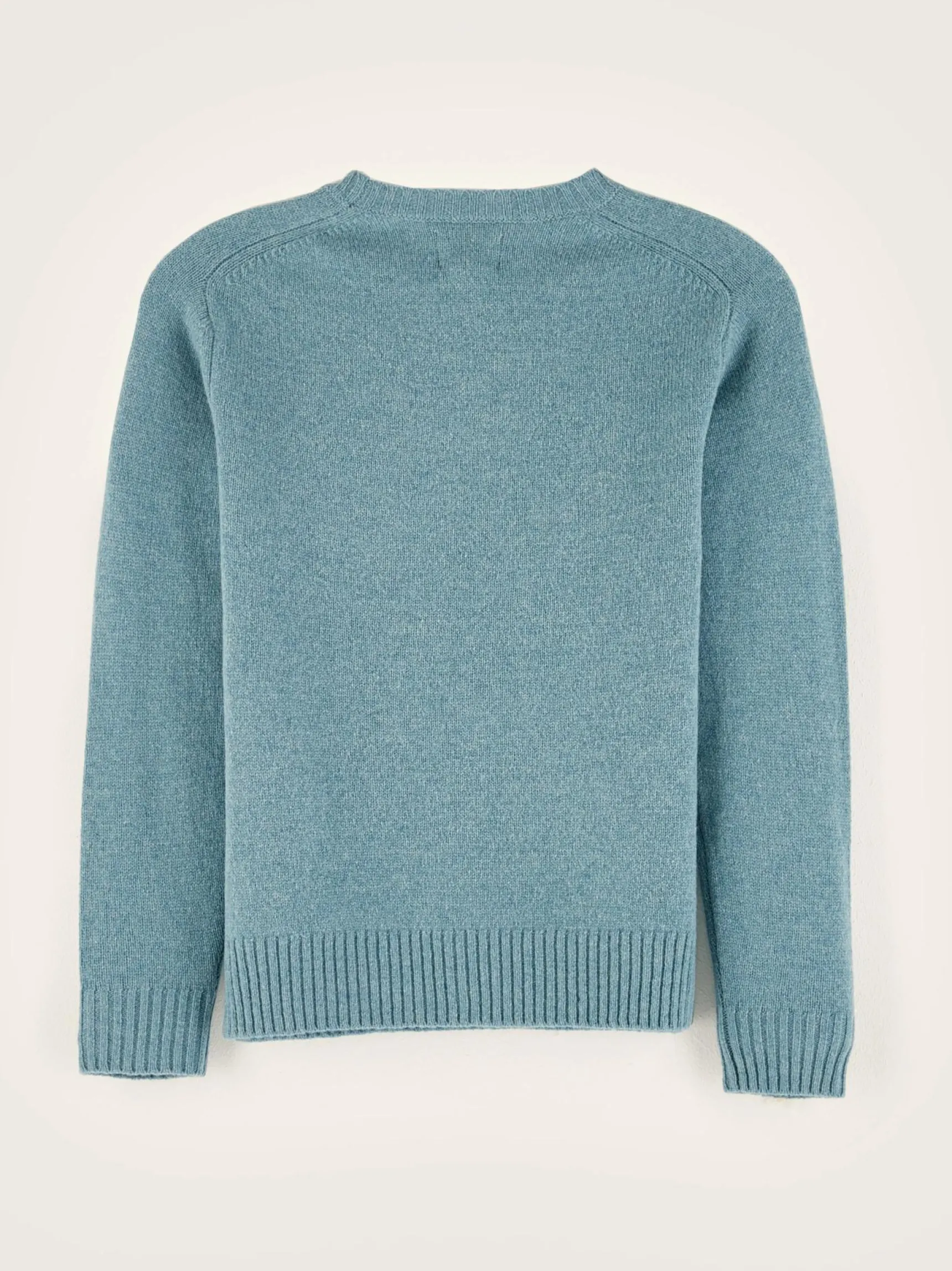 Comfortabele, klassieke sweater met ronde hals, van blauwe merinowol.