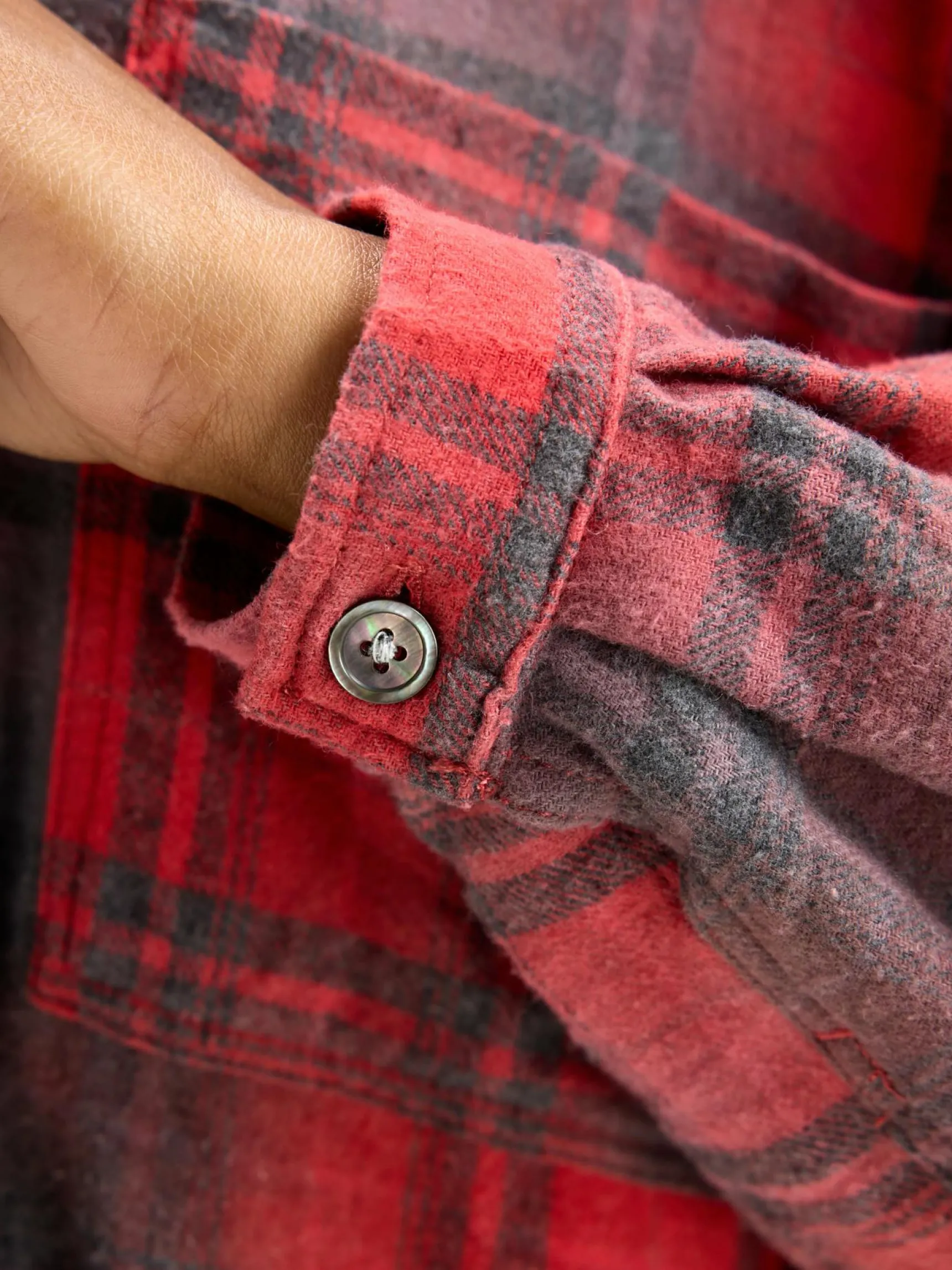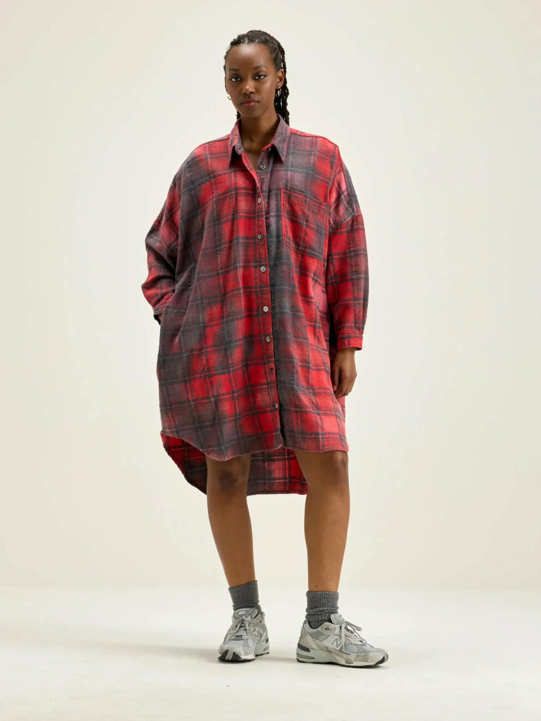 Oversizede hemdjurk van geborsteld katoen, met rode en zwarte ruiten en een gebleekte look.