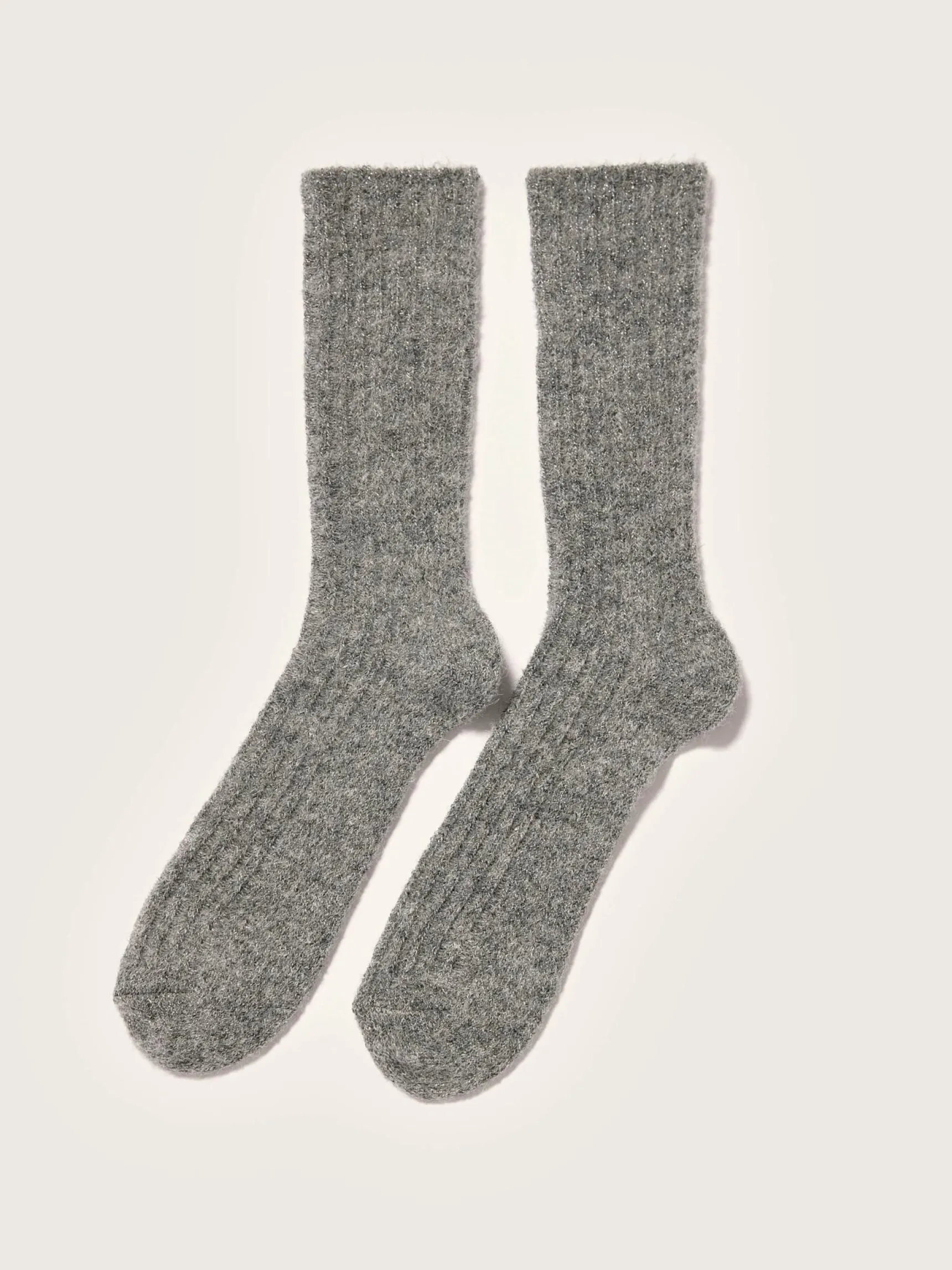 Klassieke, middengrijze sokken van lurexgaren.