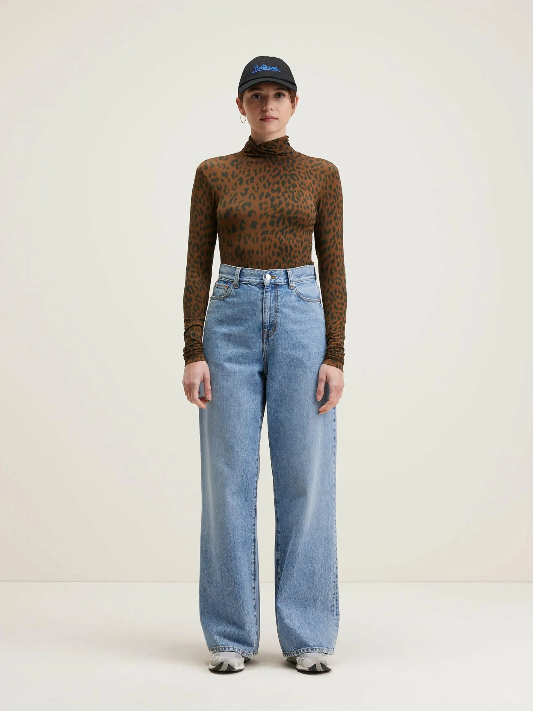 Slim fit T-shirt met rolkraag en luipaardprint, voelt aan als een tweede huid.