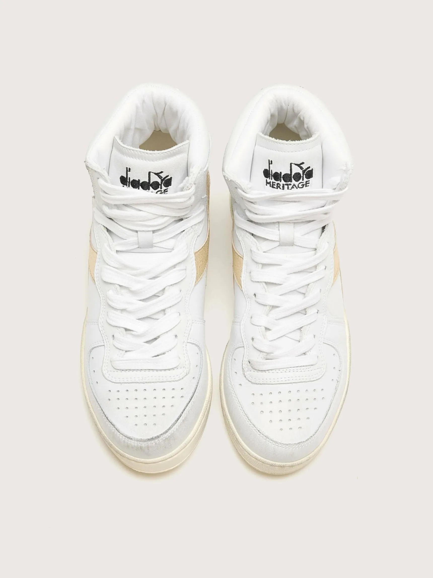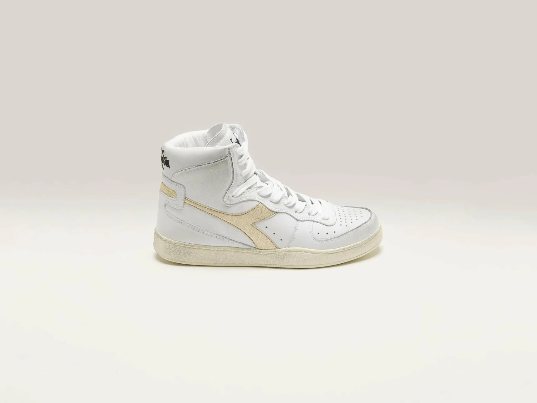 De Diadora Mi Basket Used Heritage high-top sneakers hebben een bovenwerk van volnerflederen met een speciale stonewash behandeling.
