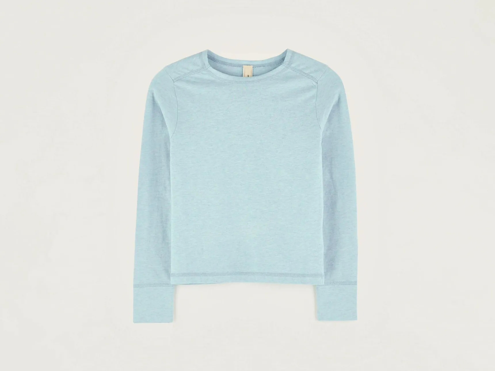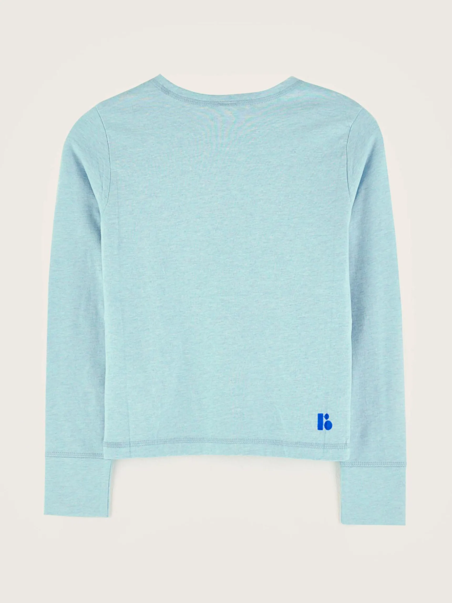 Blauw katoenen T-shirt met lange mouwen en een aansluitend model.
