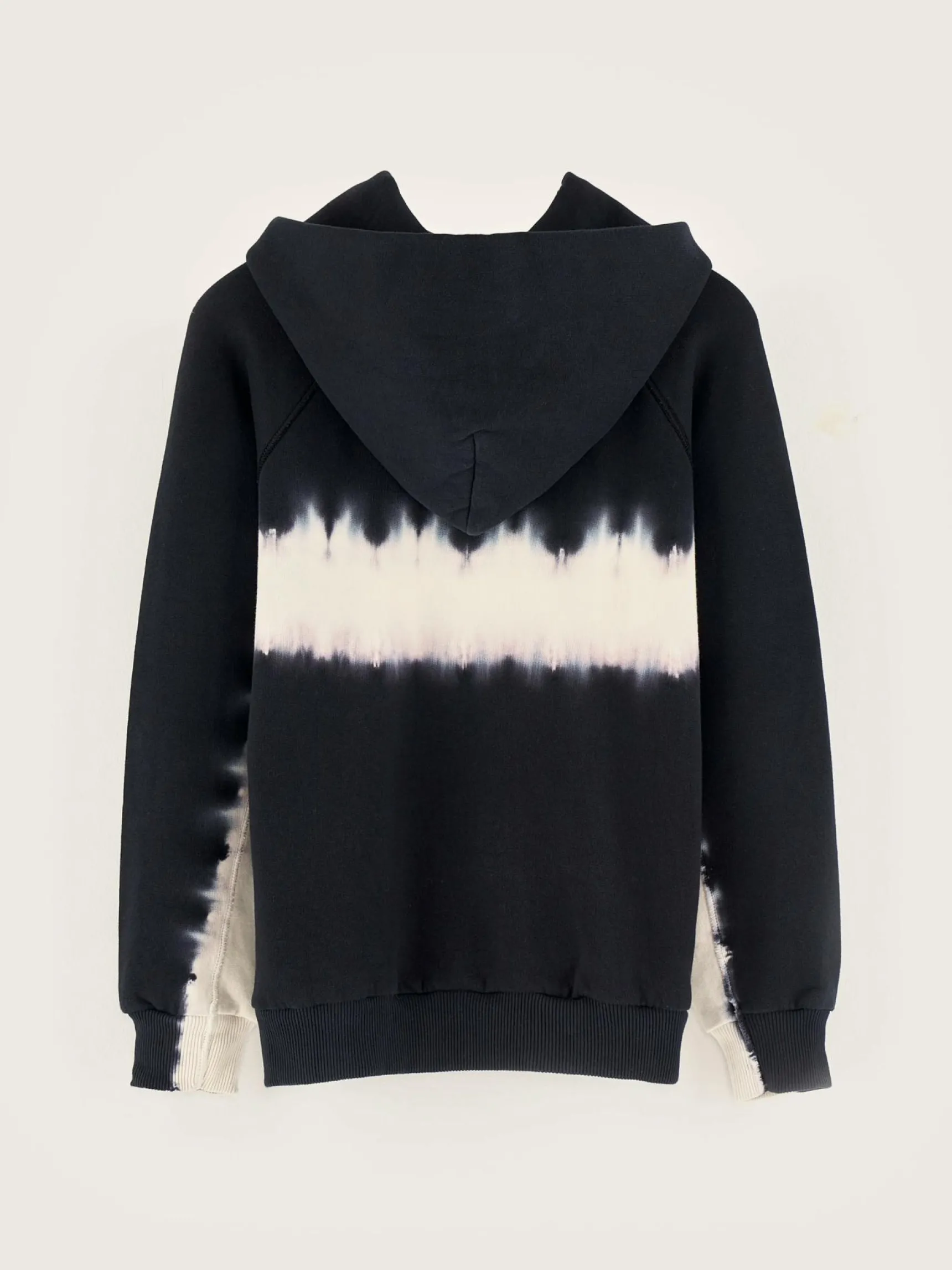 Comfortabele hoodie van geborstelde fleece met donkerblauwe all-over tie-dye print.