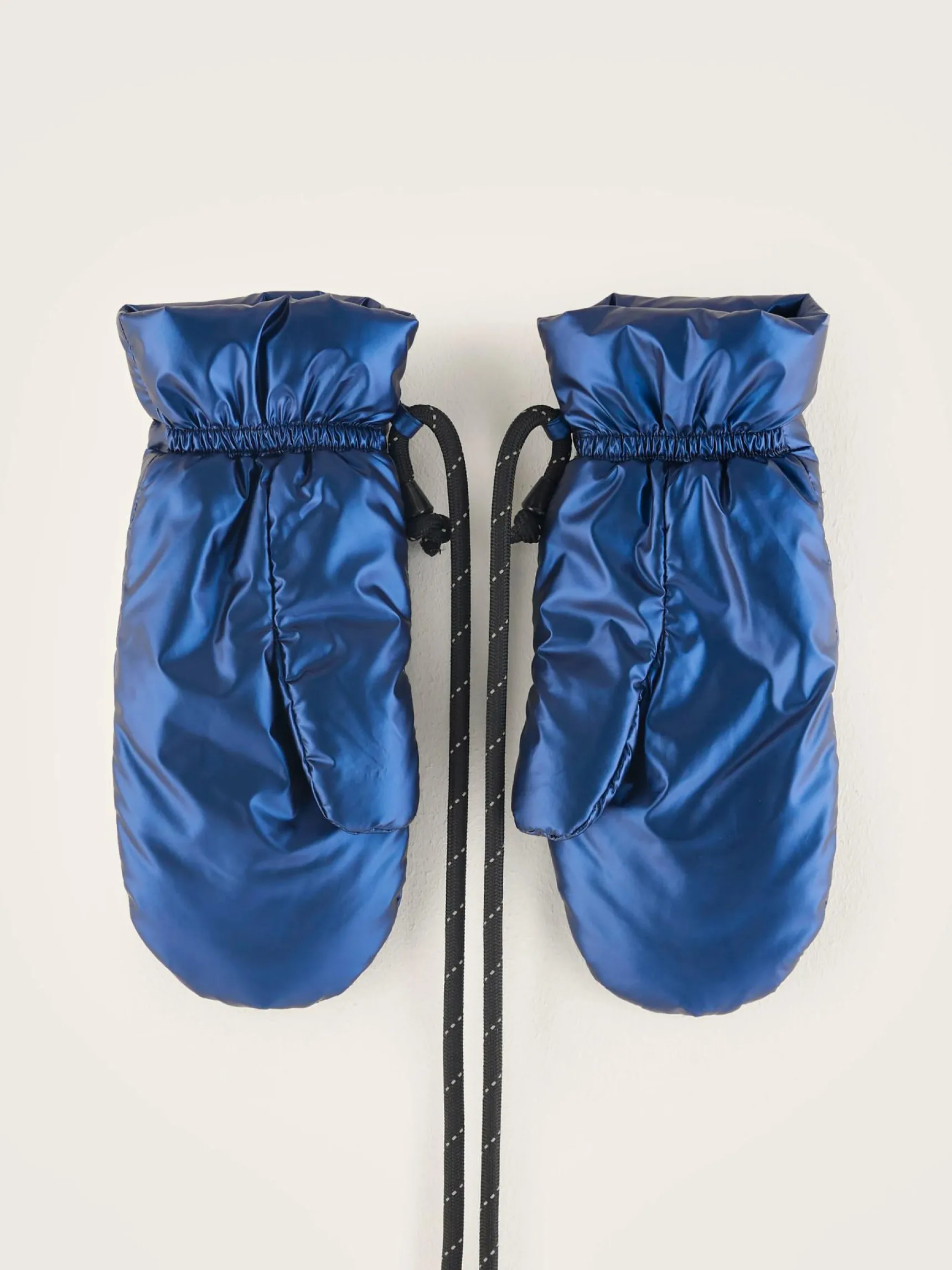 Metaalblauwe gewatteerde wanten.