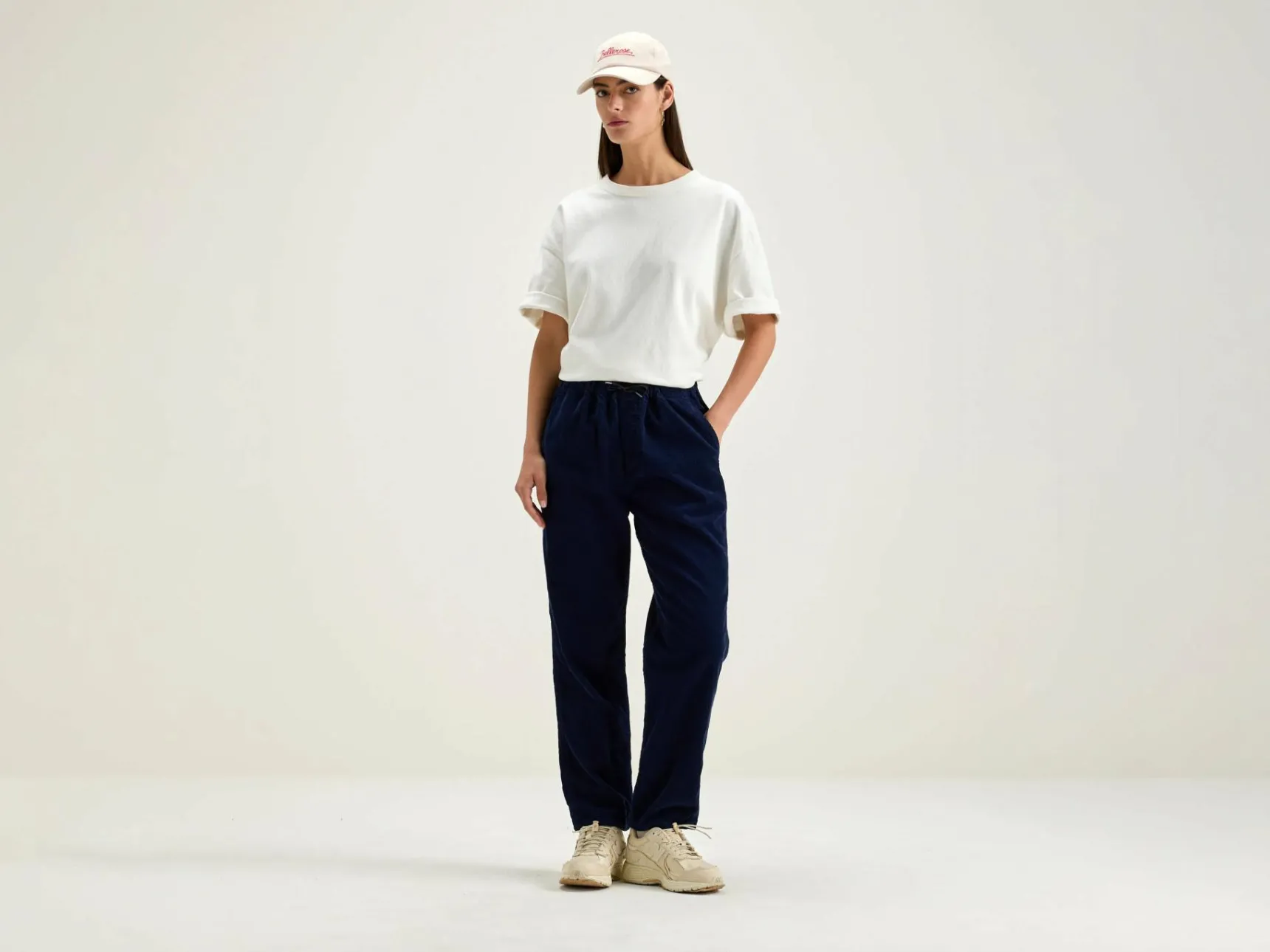 Relaxede marineblauwe broek met een elastische tailleband, van katoencorduroy.