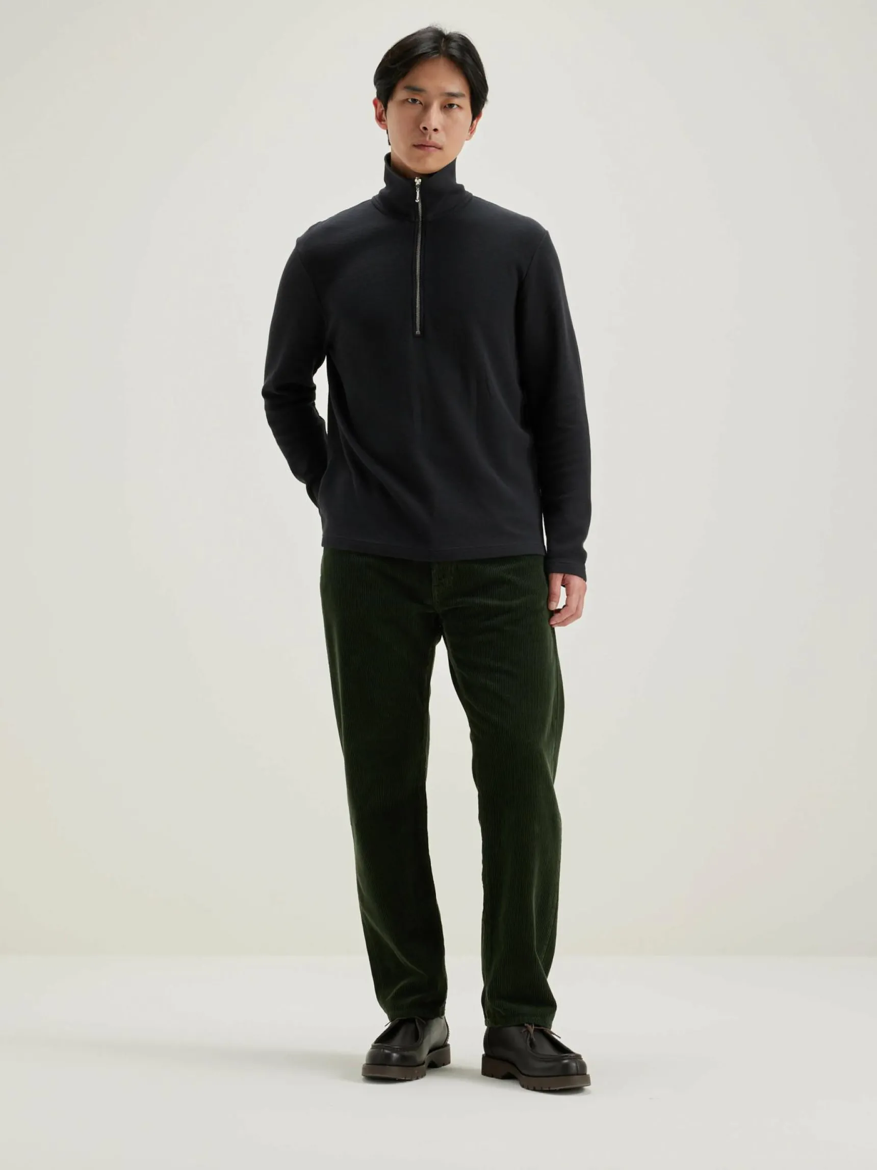 Klassiek marineblauw T-shirt met lange mouwen en een hals met ritssluiting, van dubbelzijdige katoenjersey.