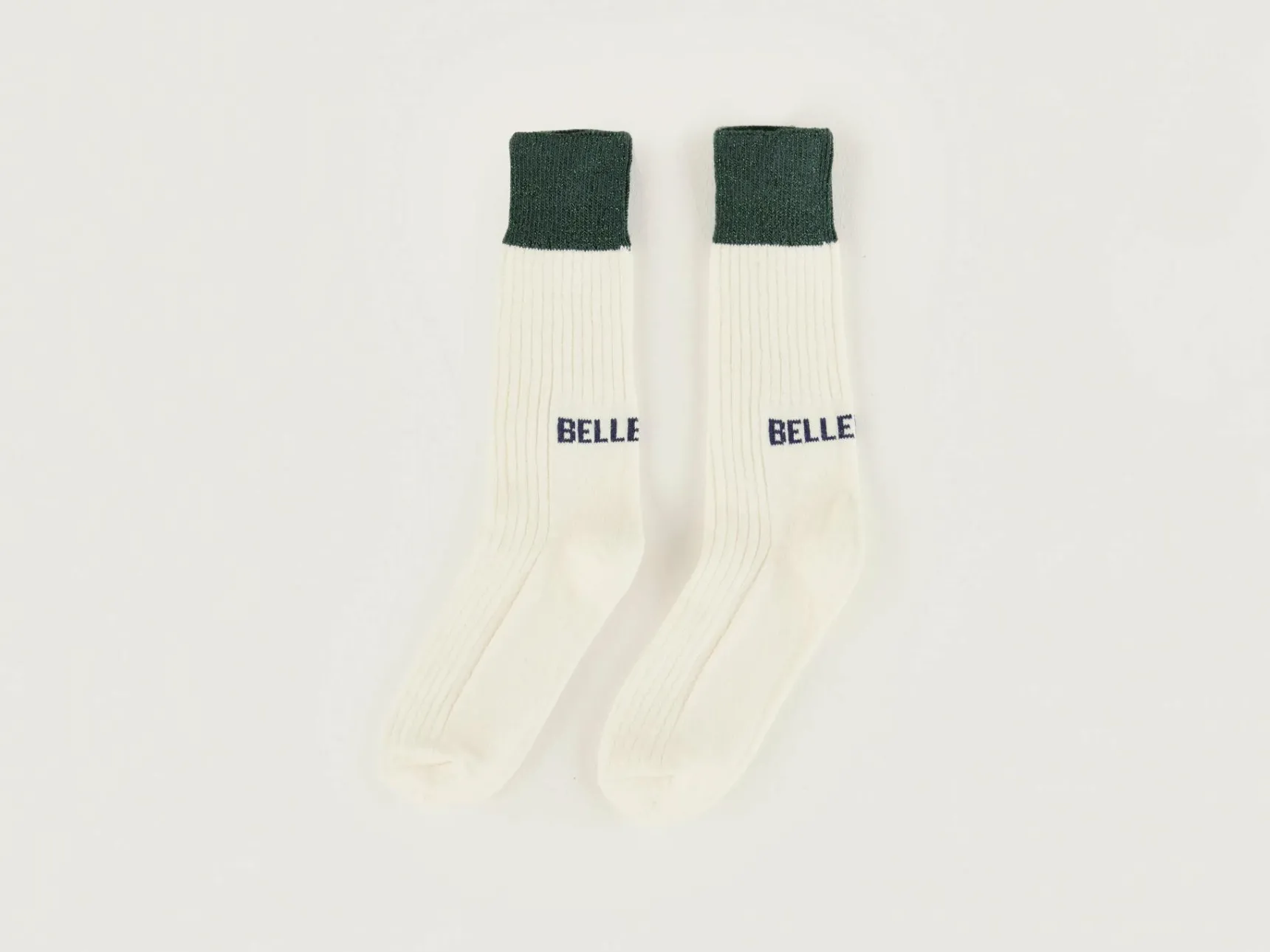 Gewone sokken van ecru geribde wolmix met Bellerose-logo.
