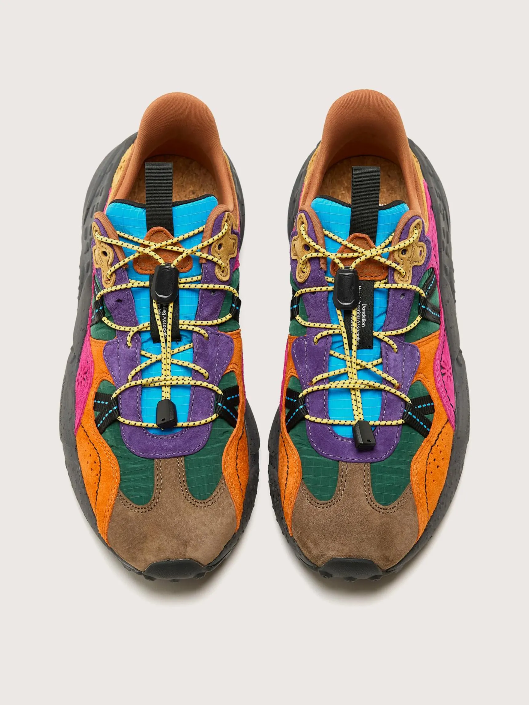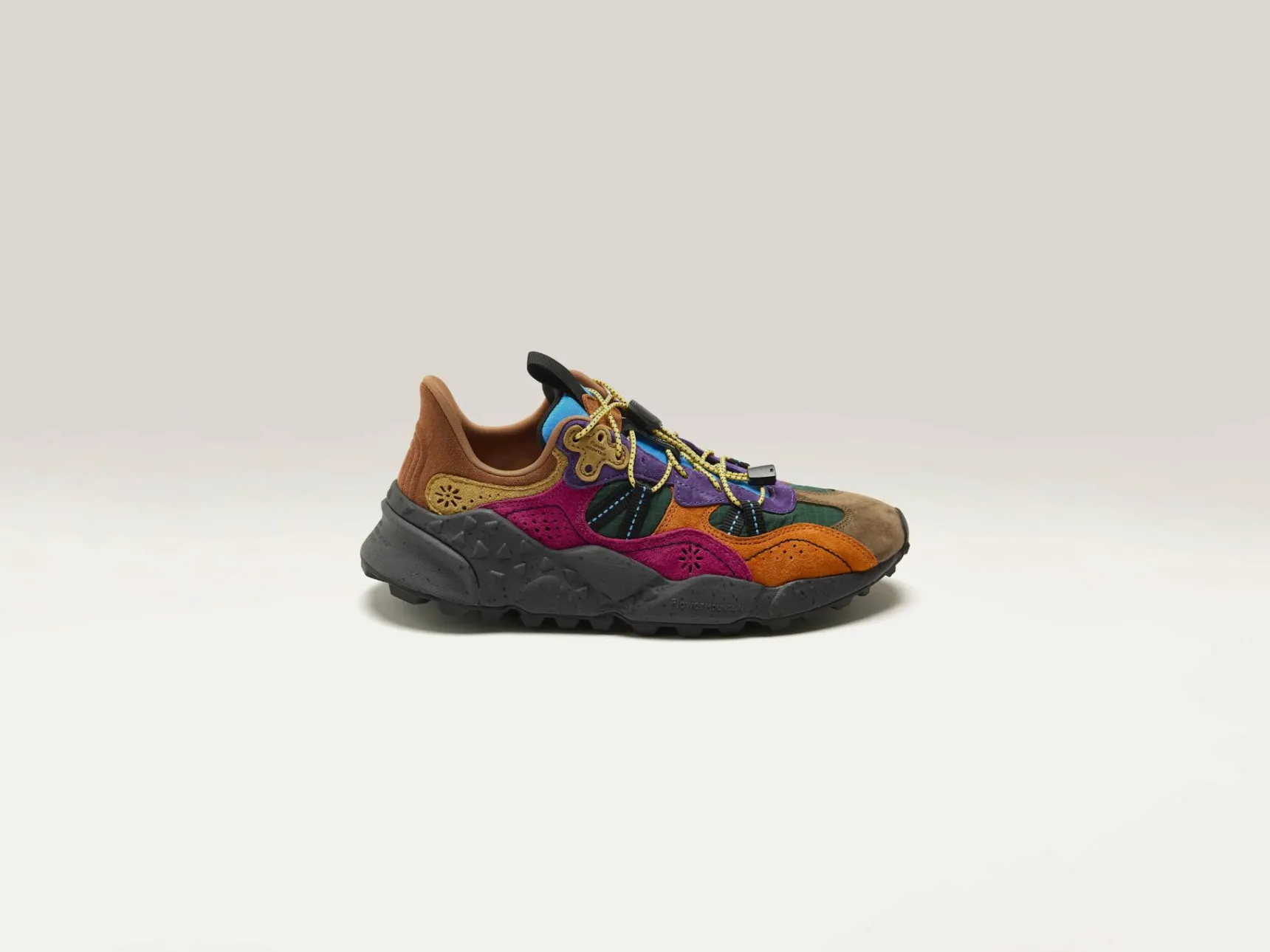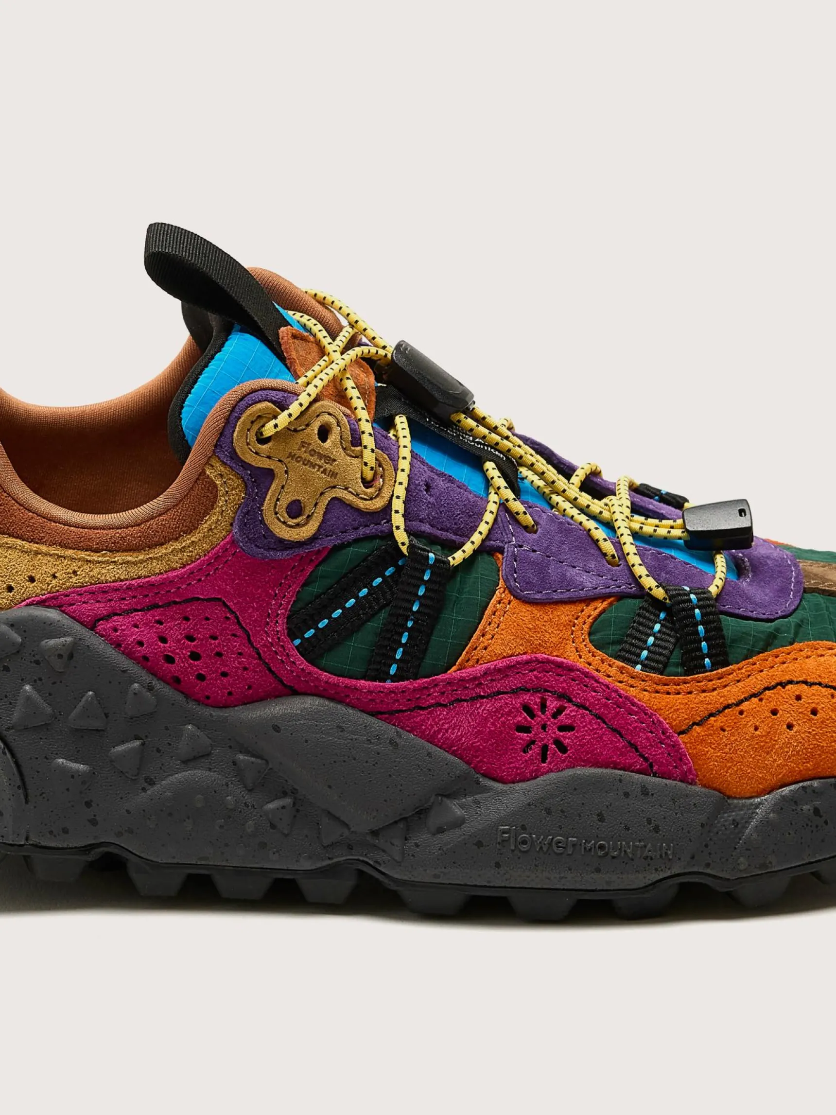 De Flower Mountain Tiger Hill sneakers hebben een ademende bovenwerk van mesh, suède panelen en een hiel van technisch gebreide stof.