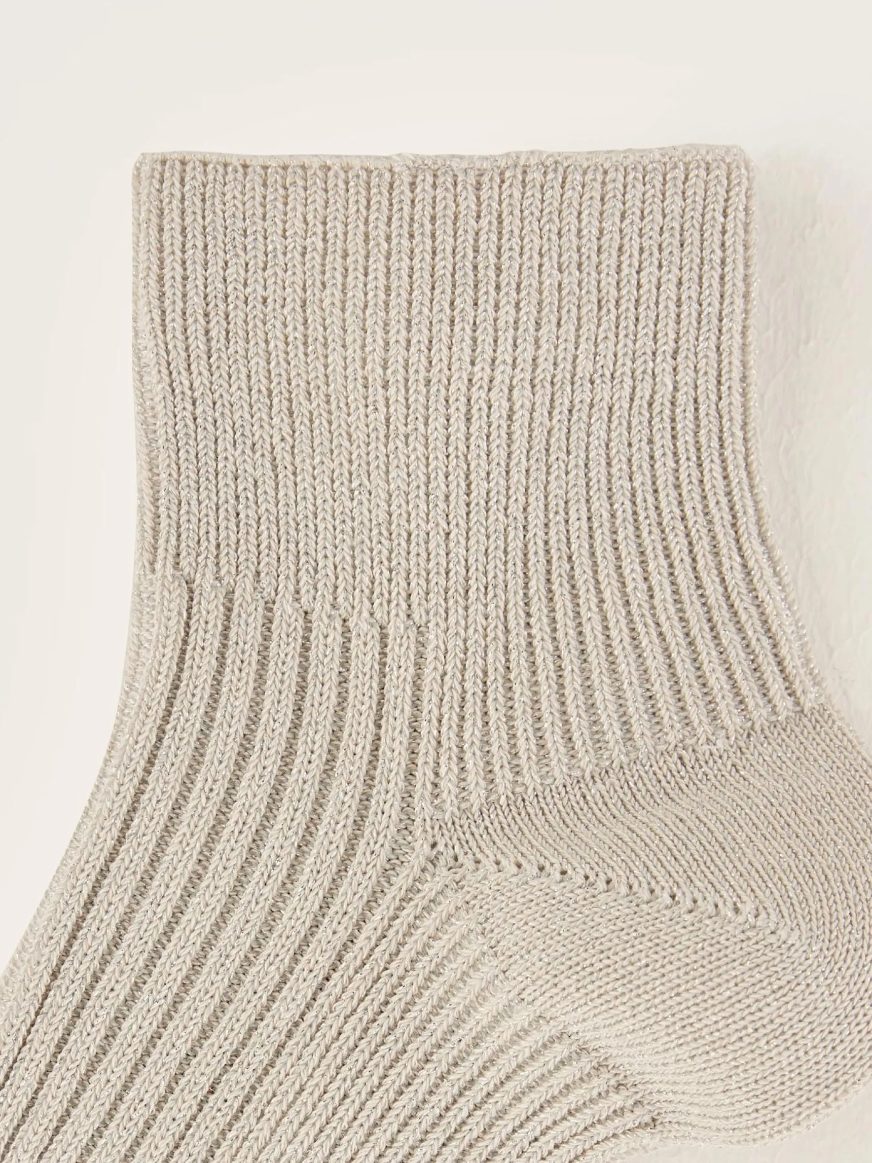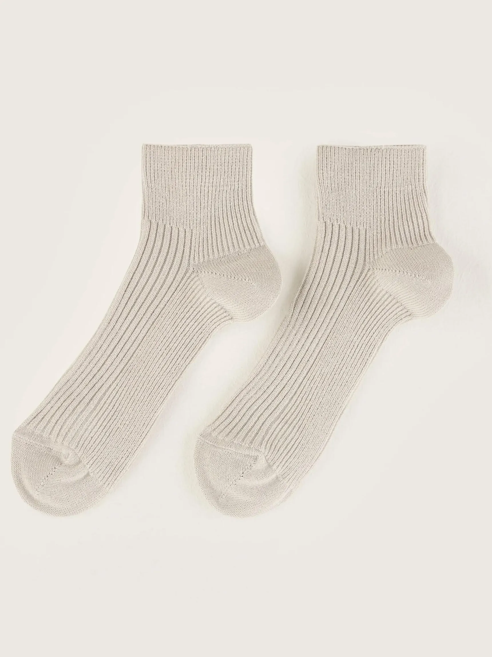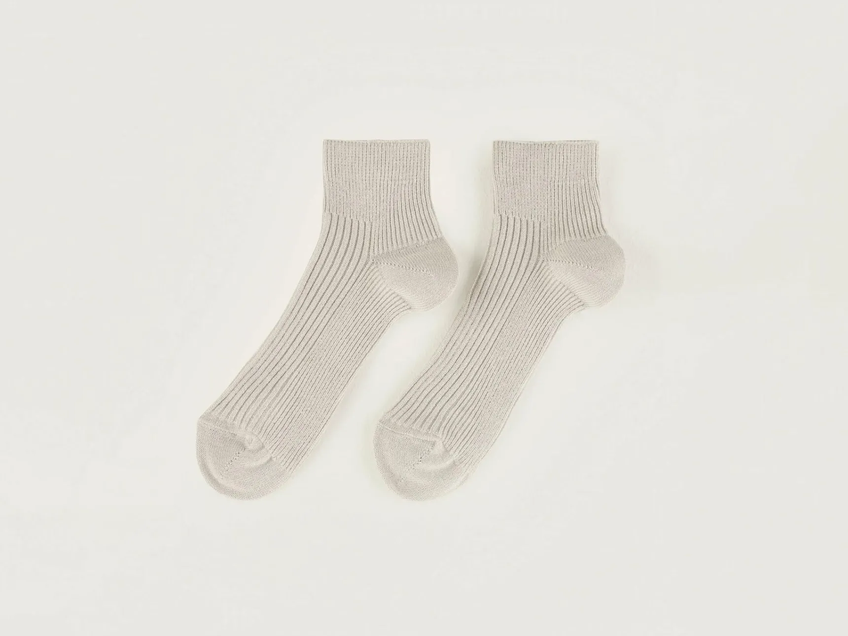 Korte geribde oestergrijze sportsokken met een lichtgrijs.