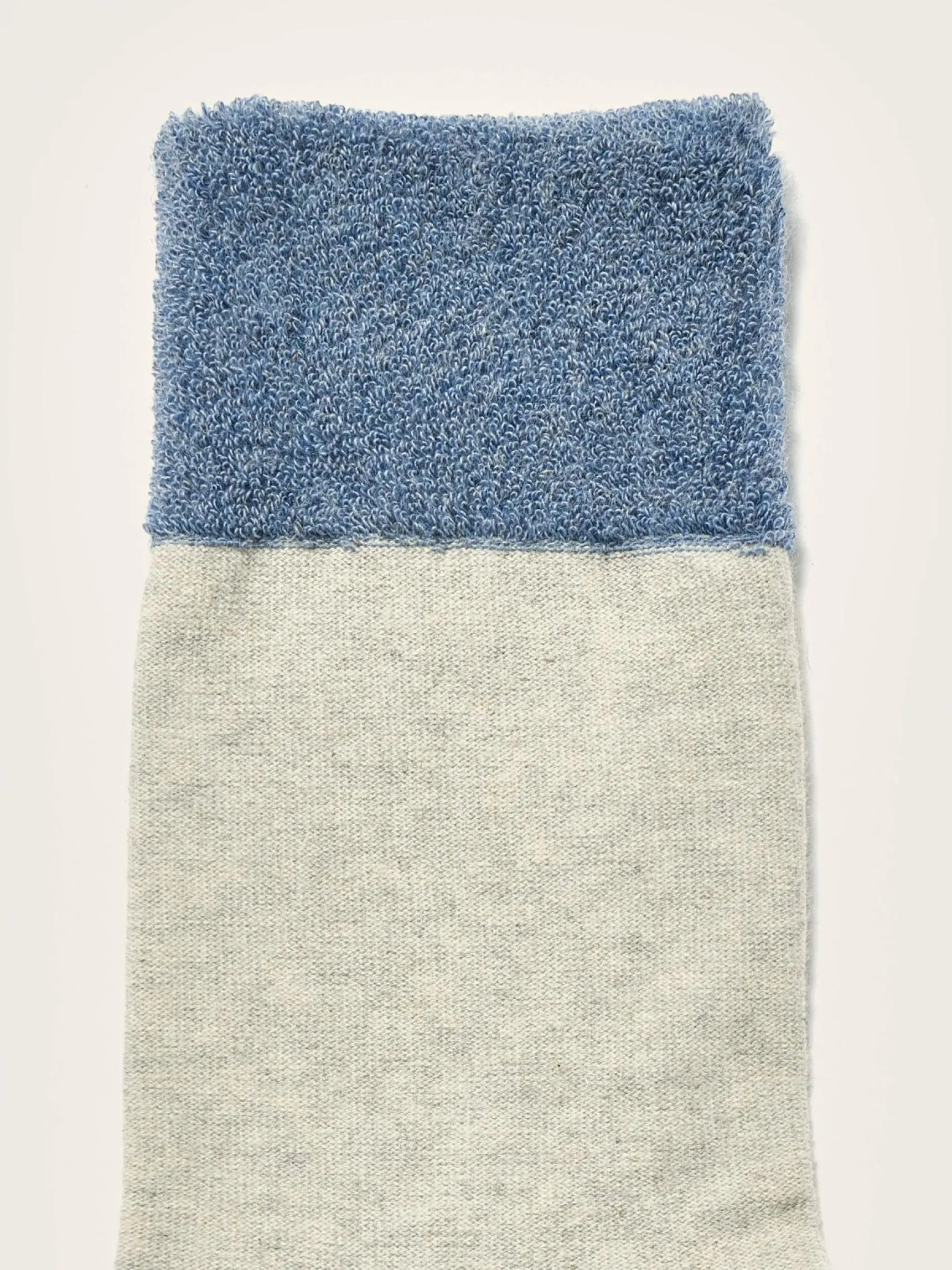 Klassieke, heidegrijze sokken met Bellerose-signatuur van badstof op de voetzool.