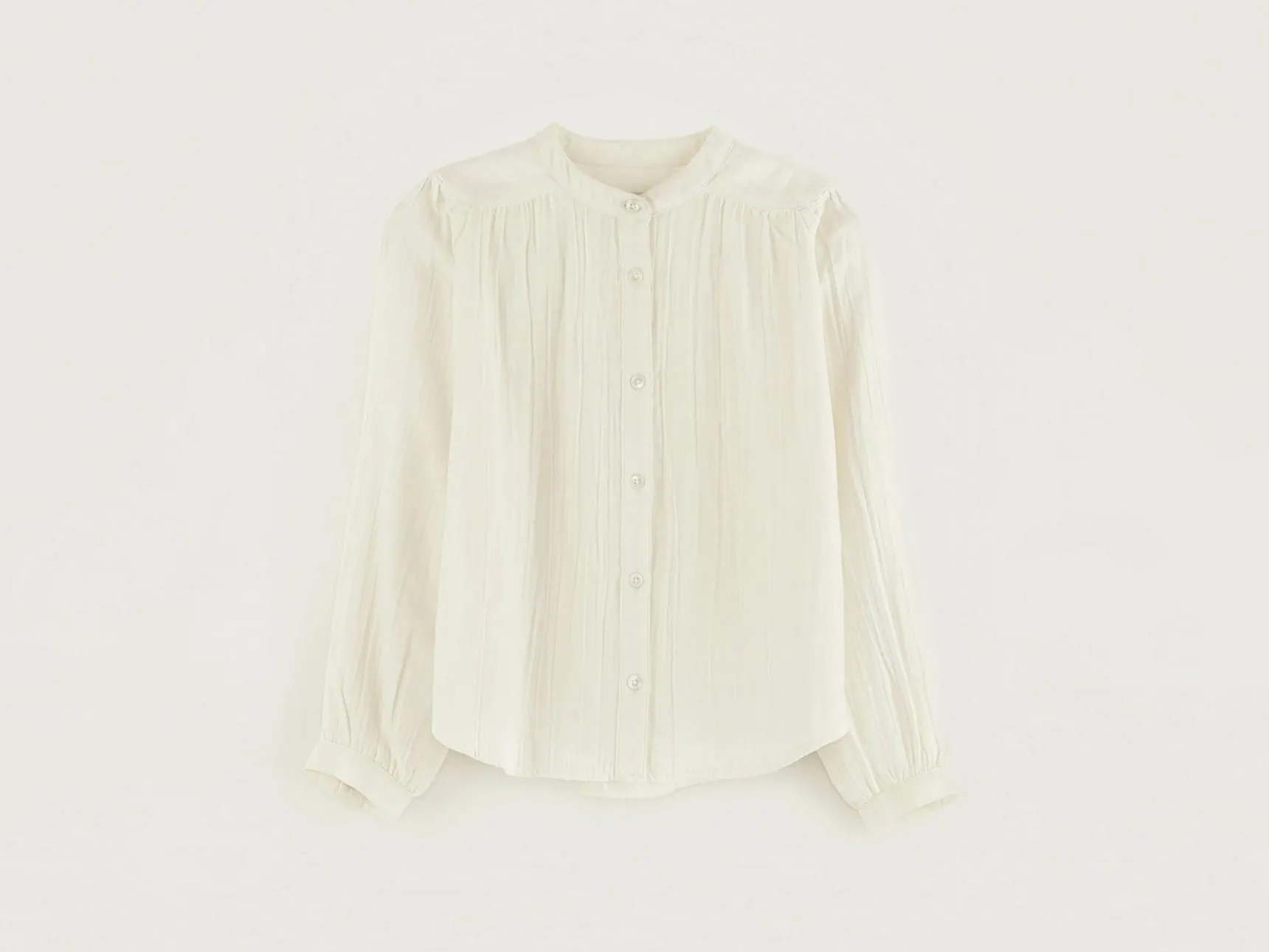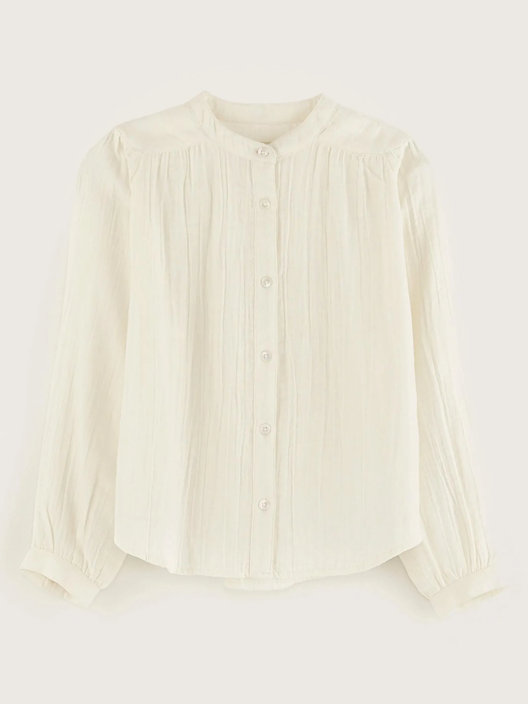Klassieke ecru blouse van dubbel geweven katoen.