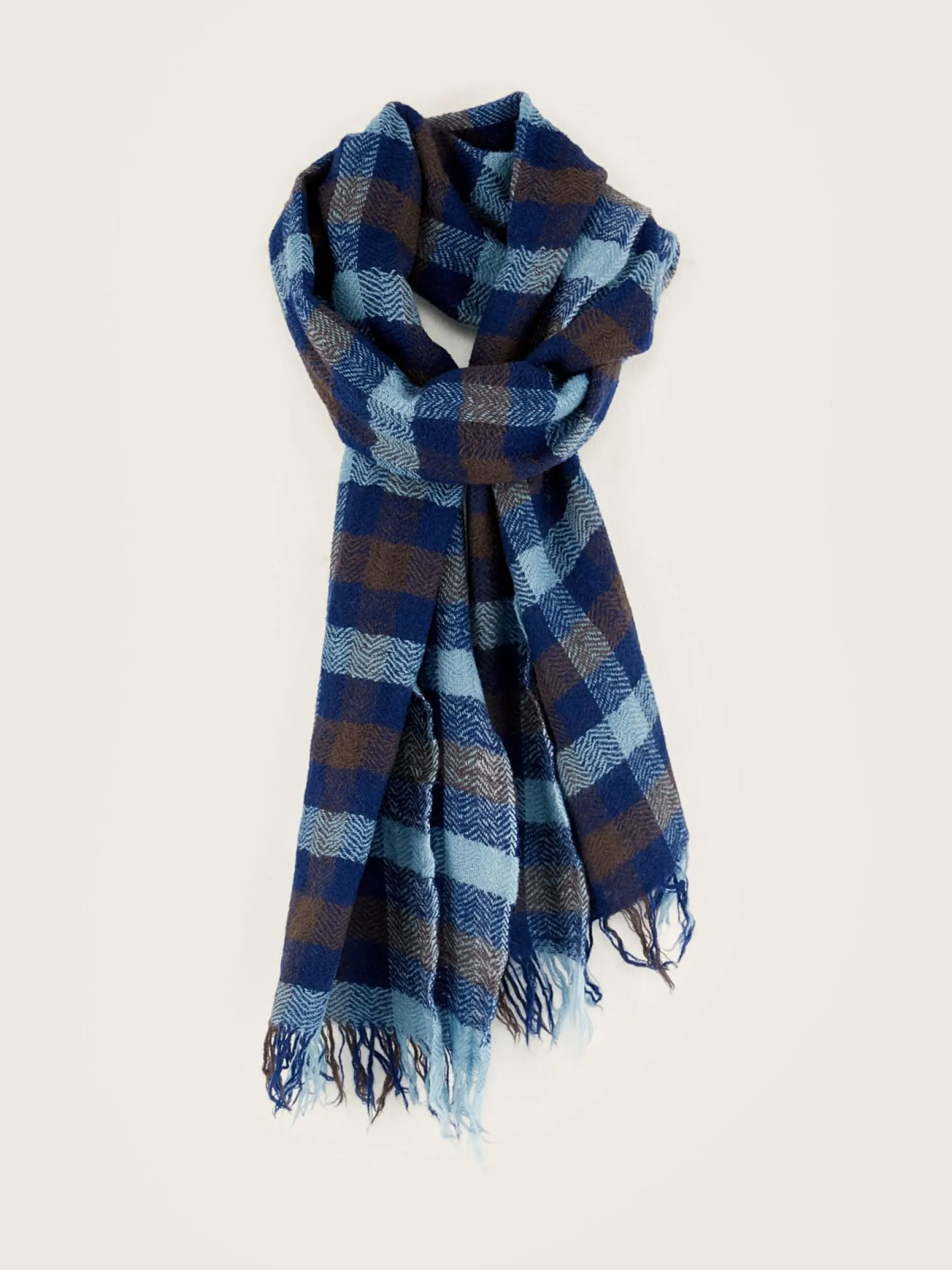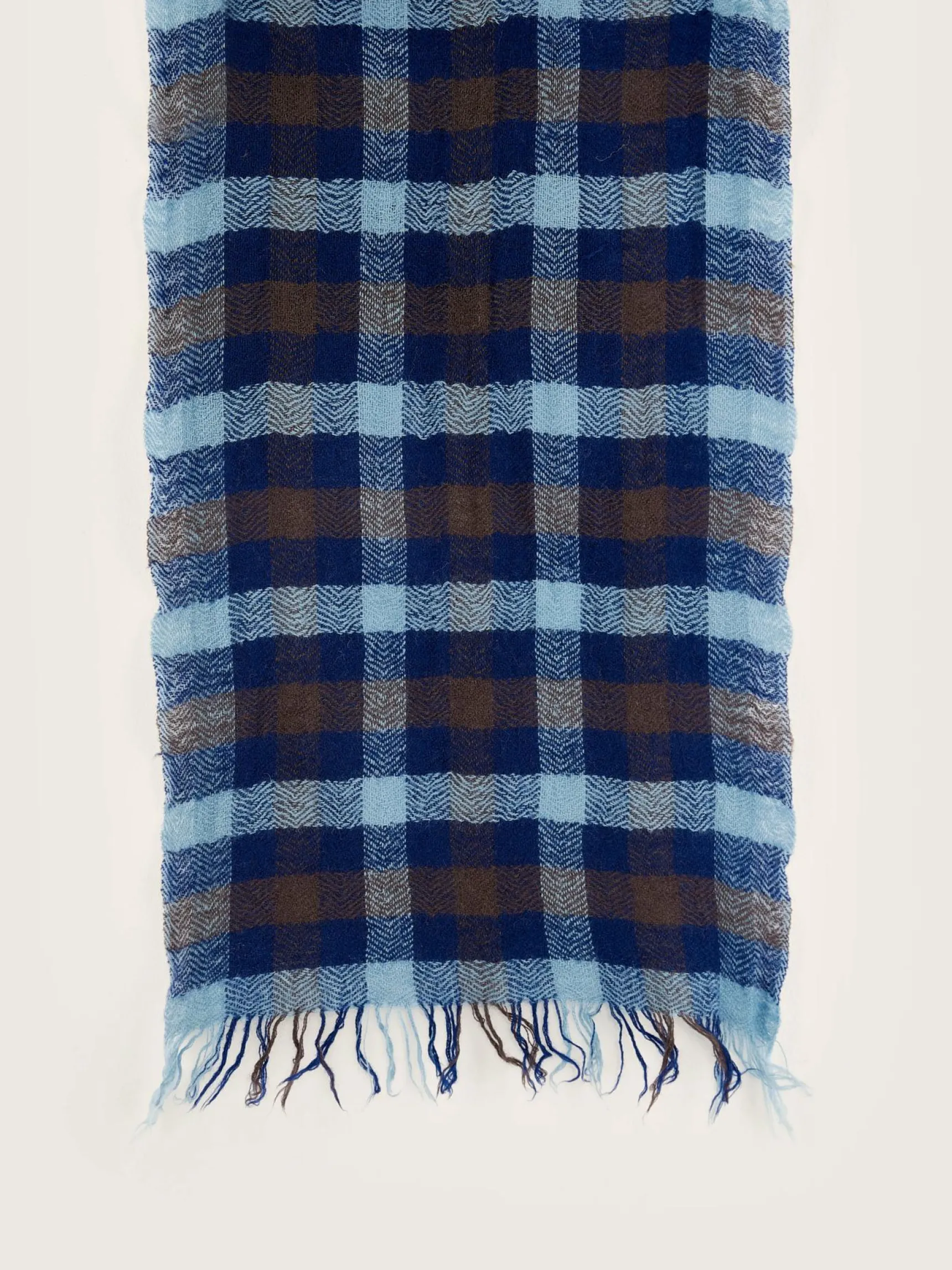 Geweven wollen sjaal met ruiten in blauwtinten.