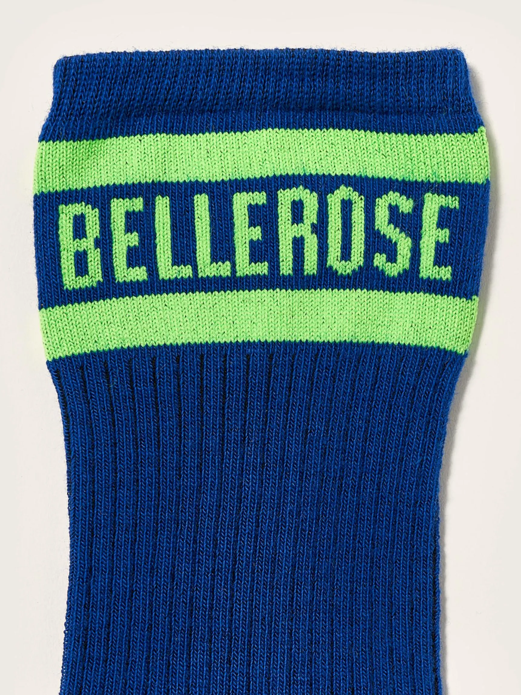 Klassieke blauwe Bellerose-sokken met groen logo.