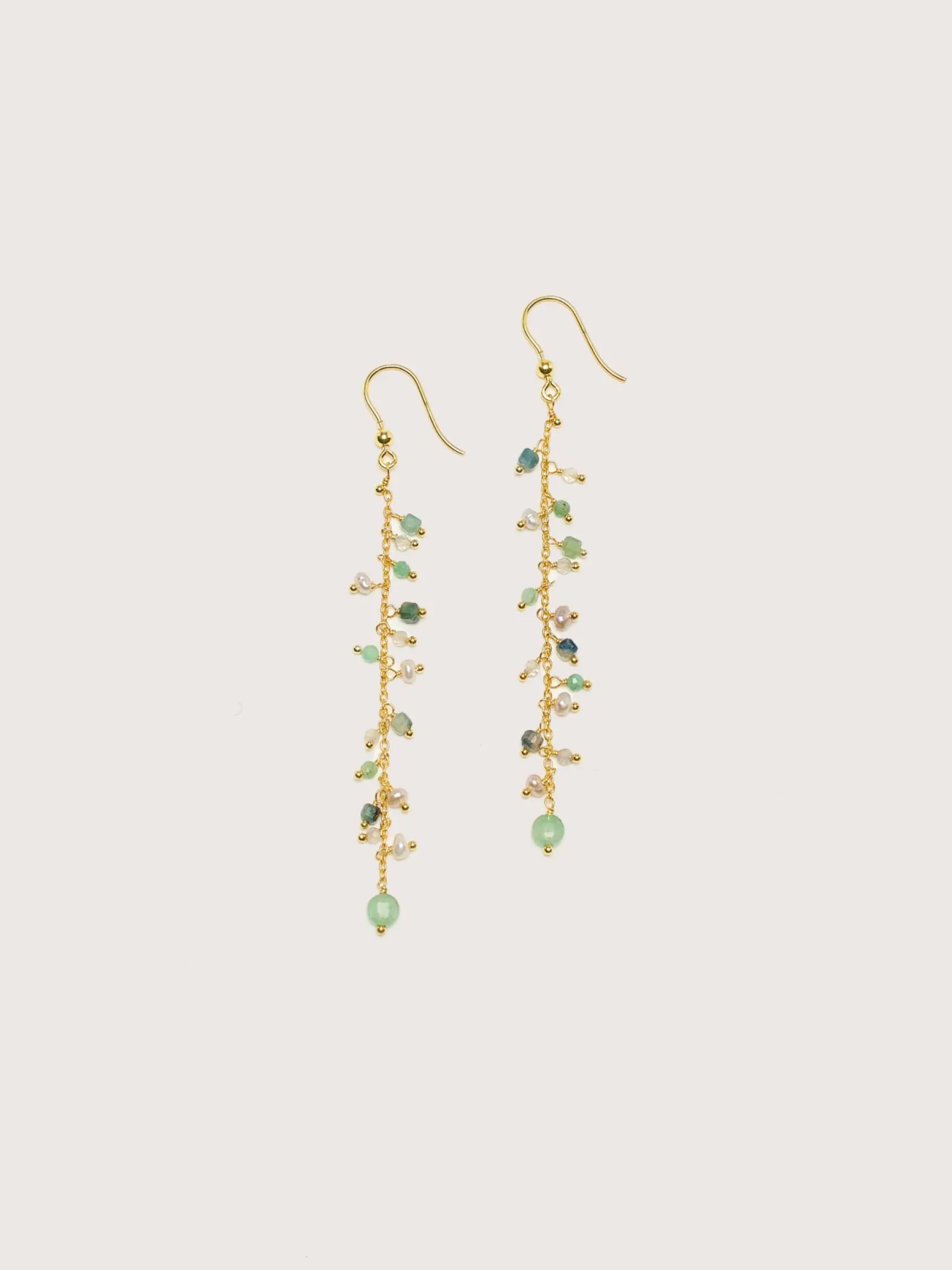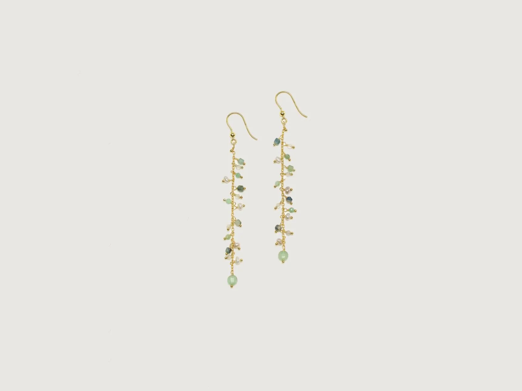 De Untitledition Ribes oorbellen zijn prachtige lange vermeil gouden kettingen met zoetwaterparels en edelstenen.
