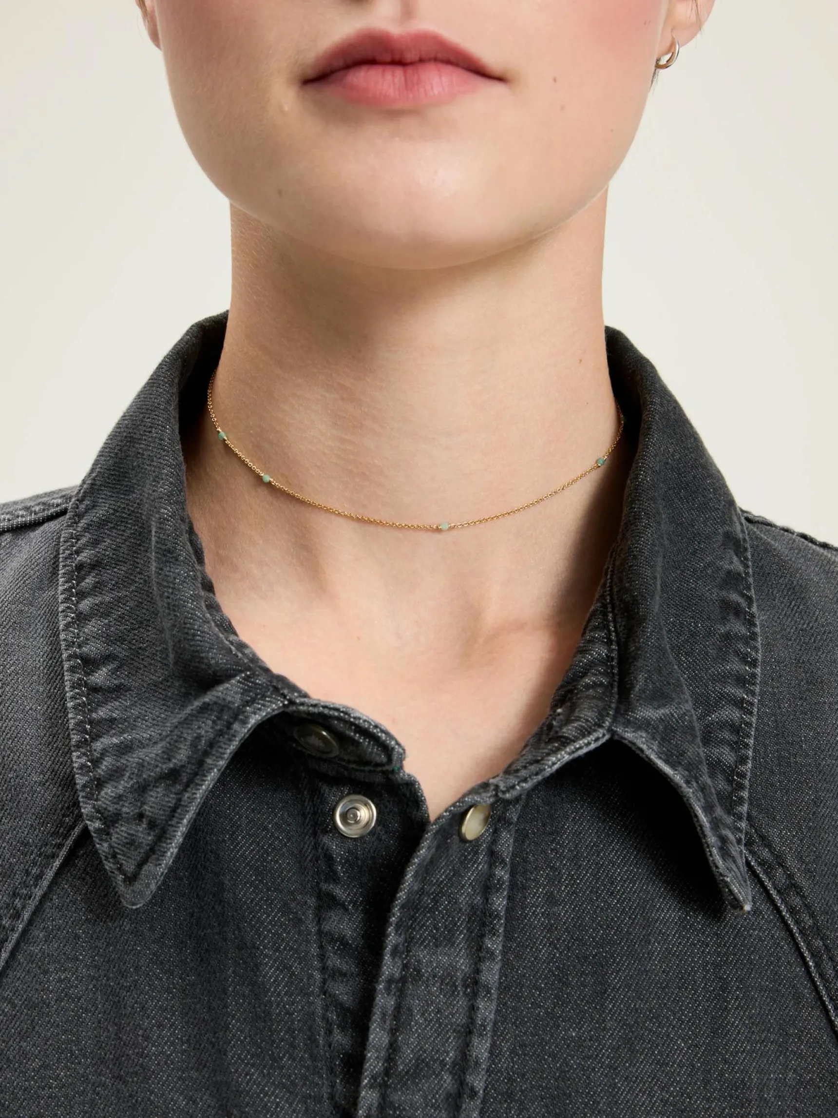 - Kan gedragen worden als ketting of dubbel omwikkeld als armband
