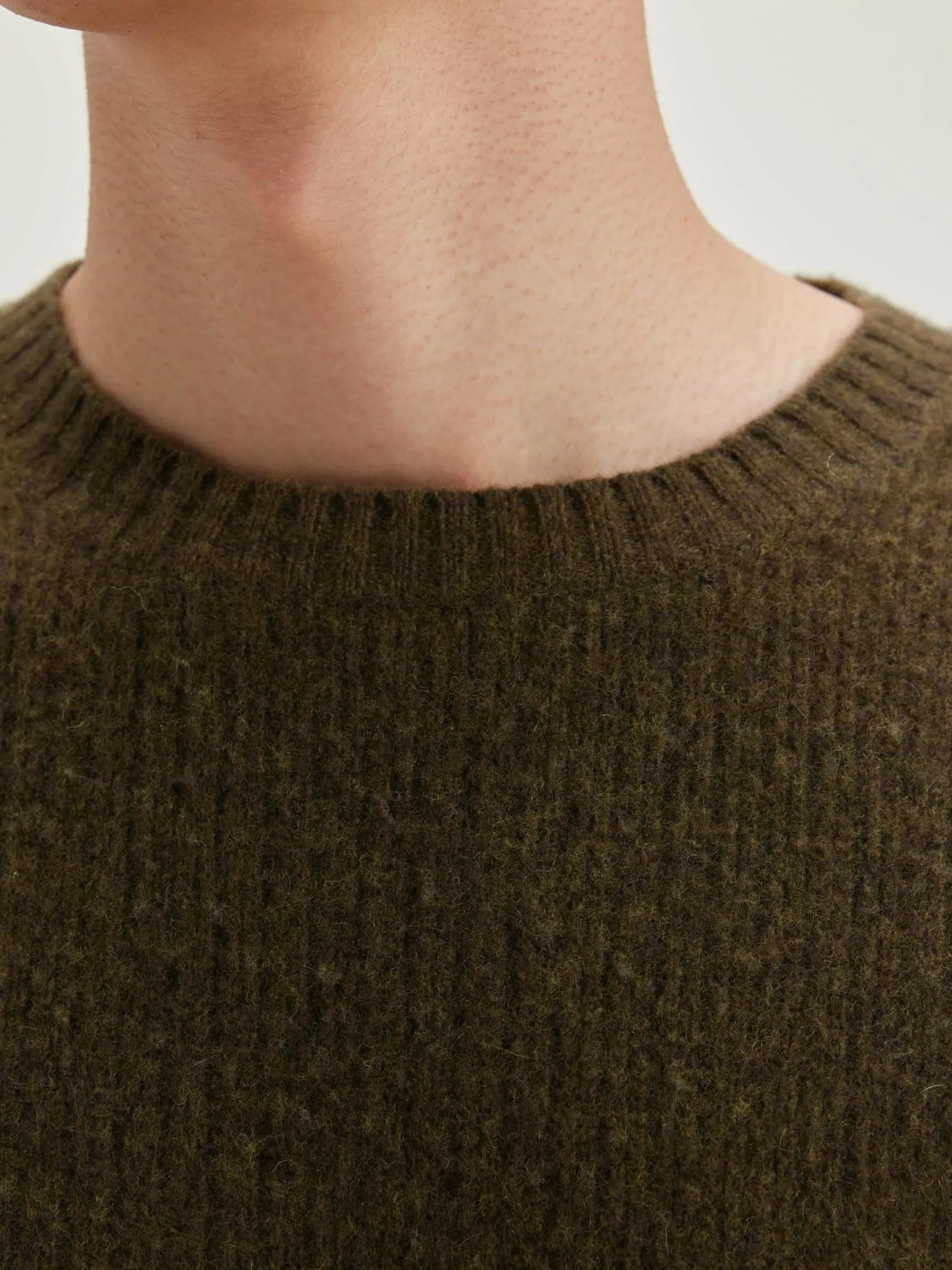Classic fit, geribde, kakigroene sweater van merinowol.