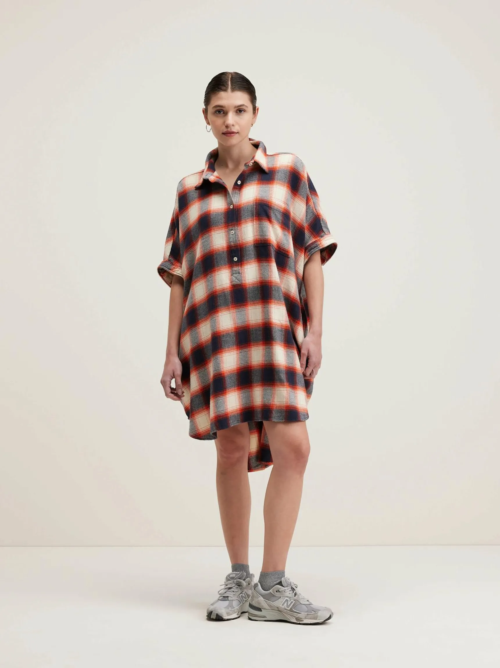Oversizede hemdjurk van geborsteld katoen, met marineblauween rode ruiten.