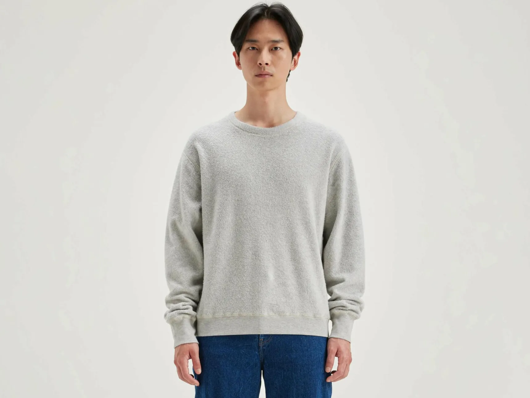 Klassiek sweatshirt met ronde hals van heidegrijze, geborstelde katoenjersey.