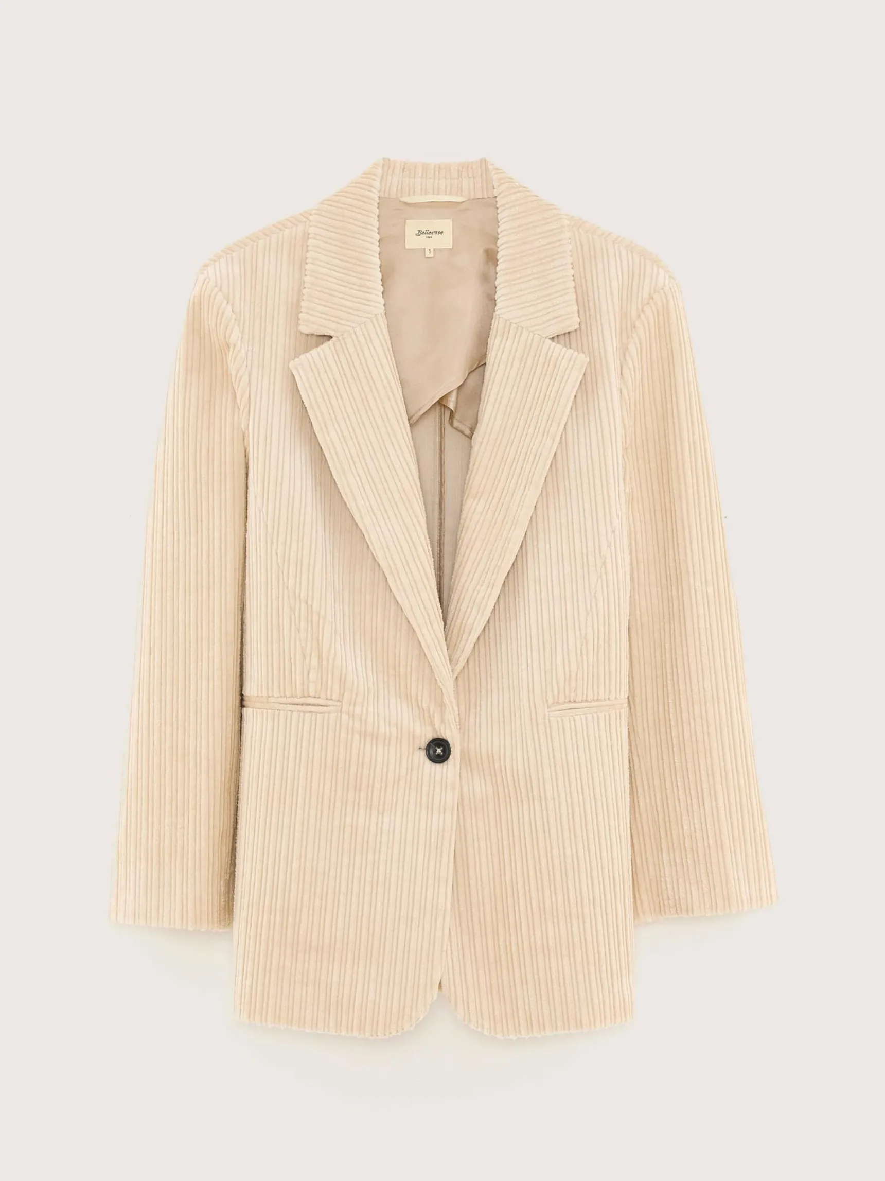 Klassieke ecru blazer met relaxed model, van corduroy met onregelmatige brede rib.