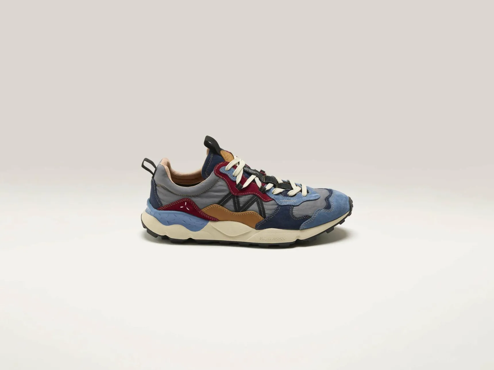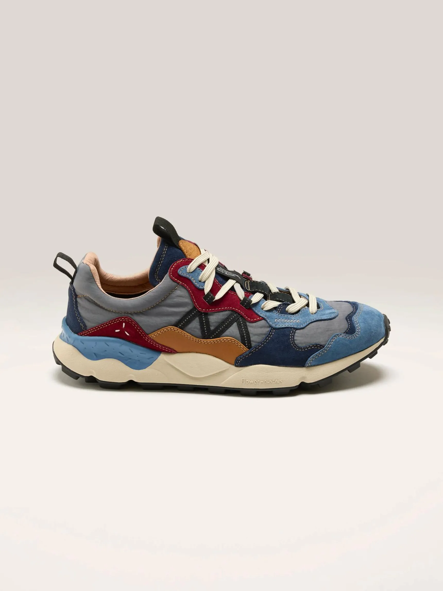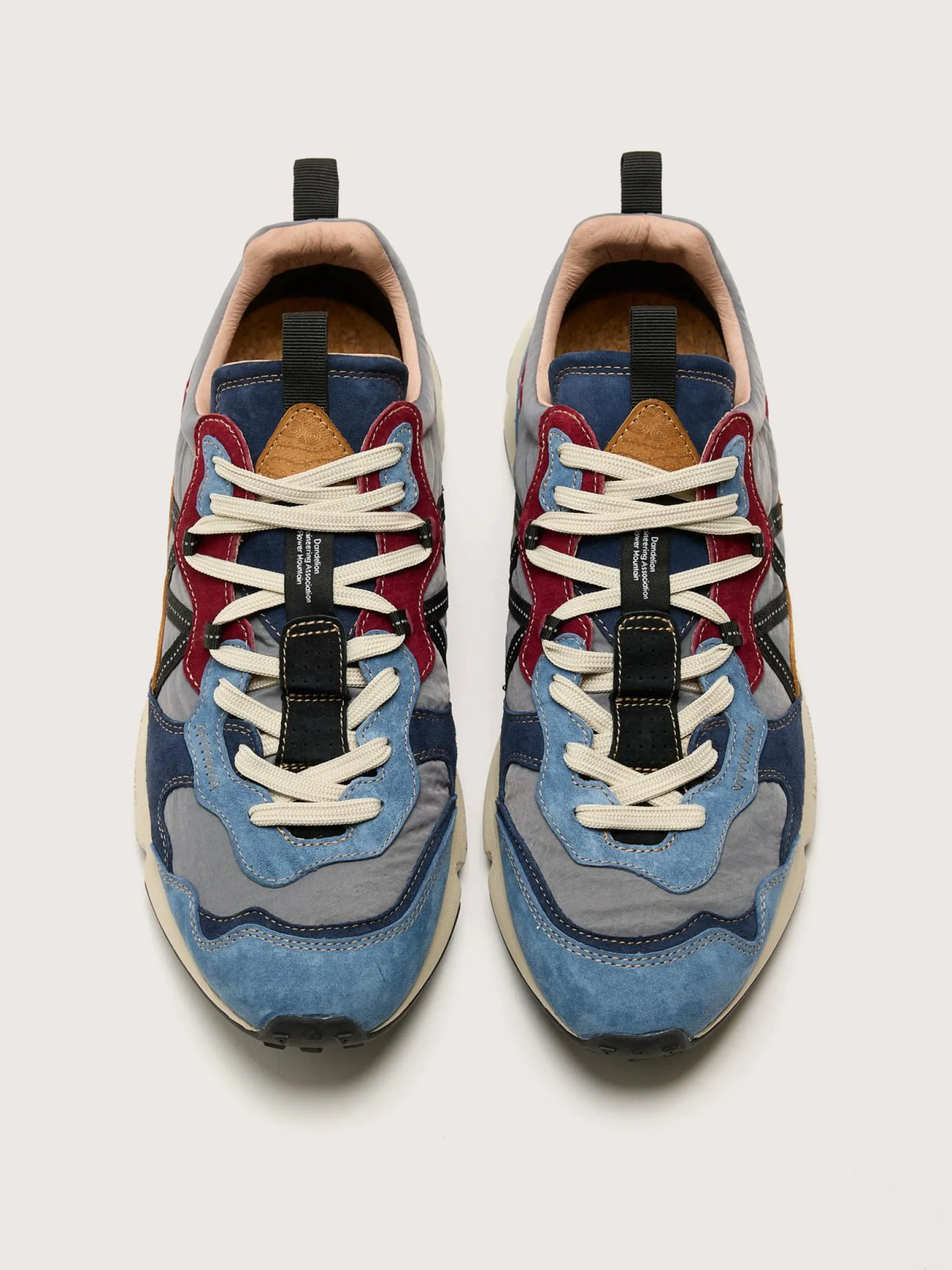 De Flower Mountain Lenzan sneakers hebben een bovenwerk van suède met technische stof en een uitneembare binnenzool van natuurlijk kurk.