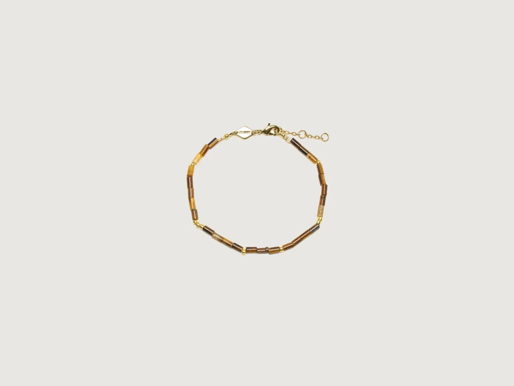 De Anni Lu Sun Stalker armband heeft tijgeroogstenen en glaskralen met 18k verguld messing.