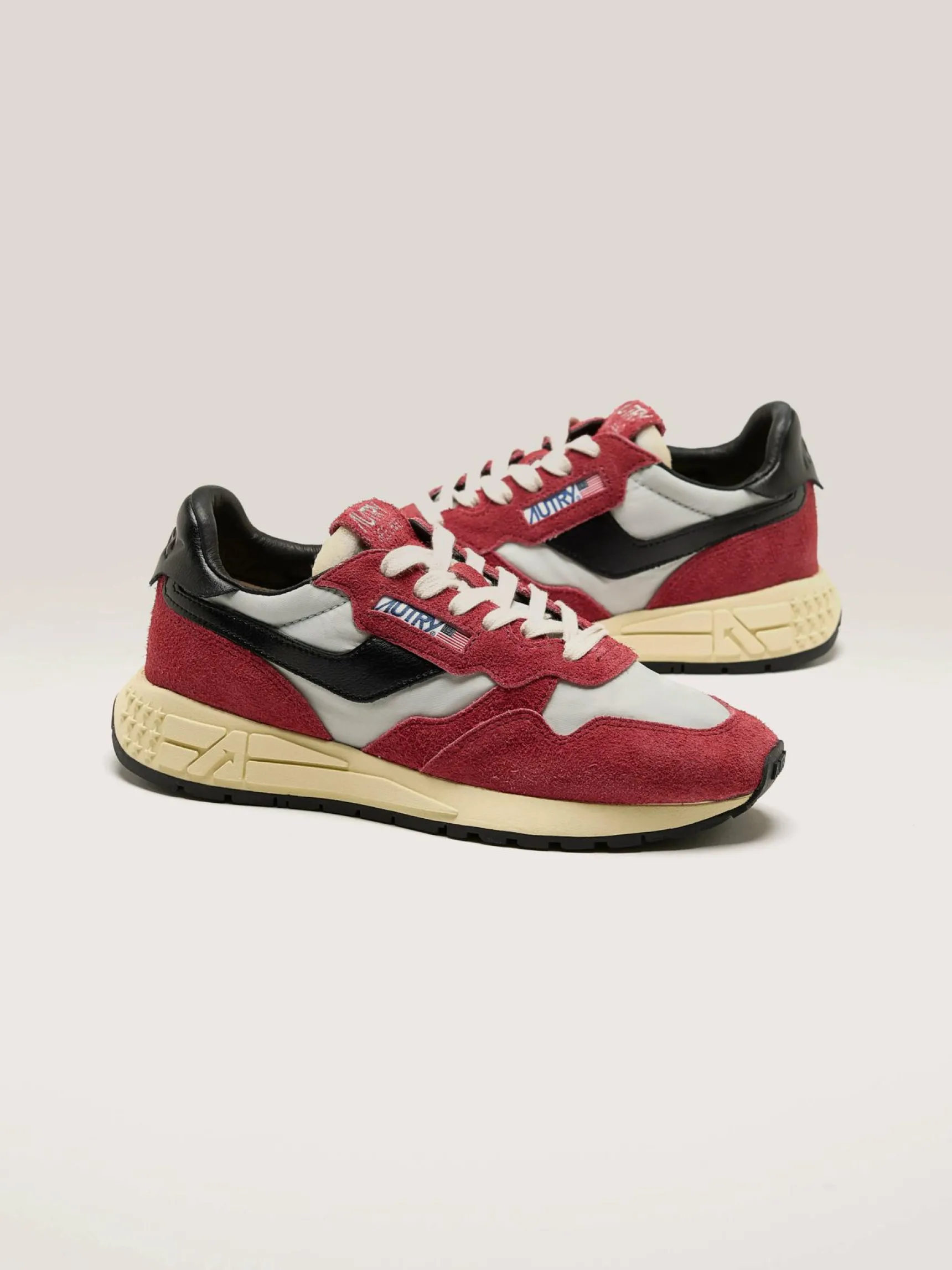 De Autry Reelwind low-top sneakers zijn een unieke vintage esthetiek en een combinatie van nylon, leder en suède.