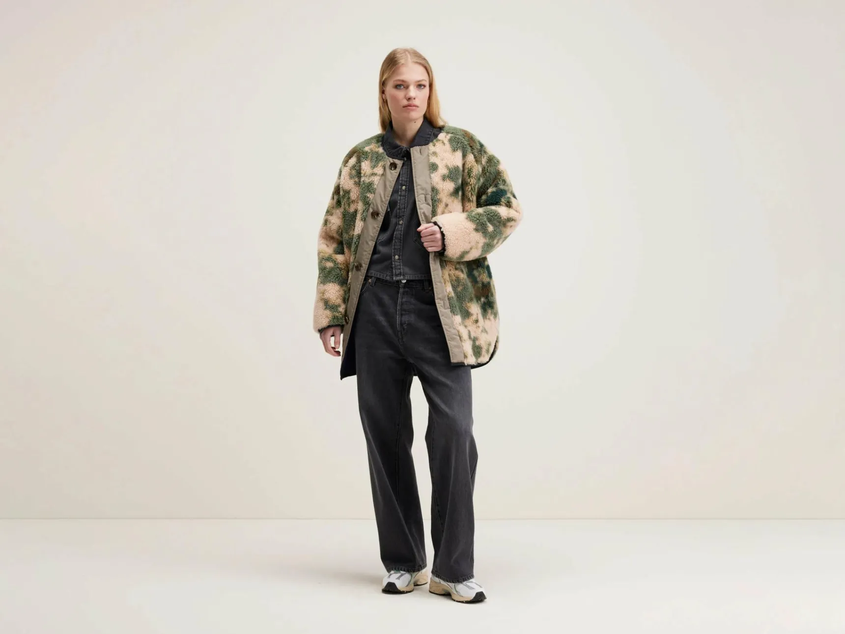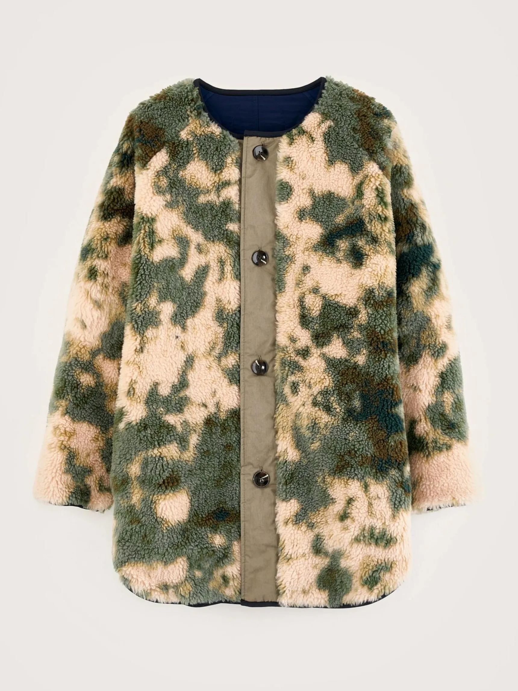 Omkeerbaar oversized marineblauw gewatteerd jack met camo-print en teddyvoering.