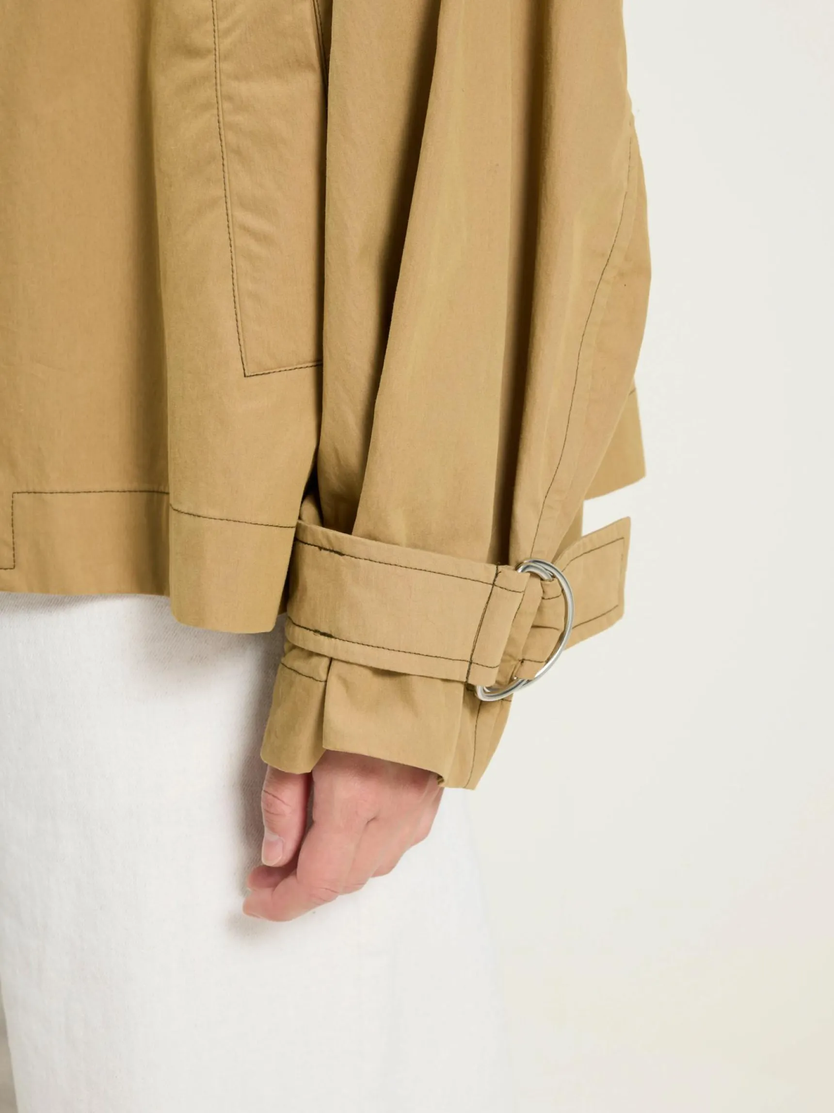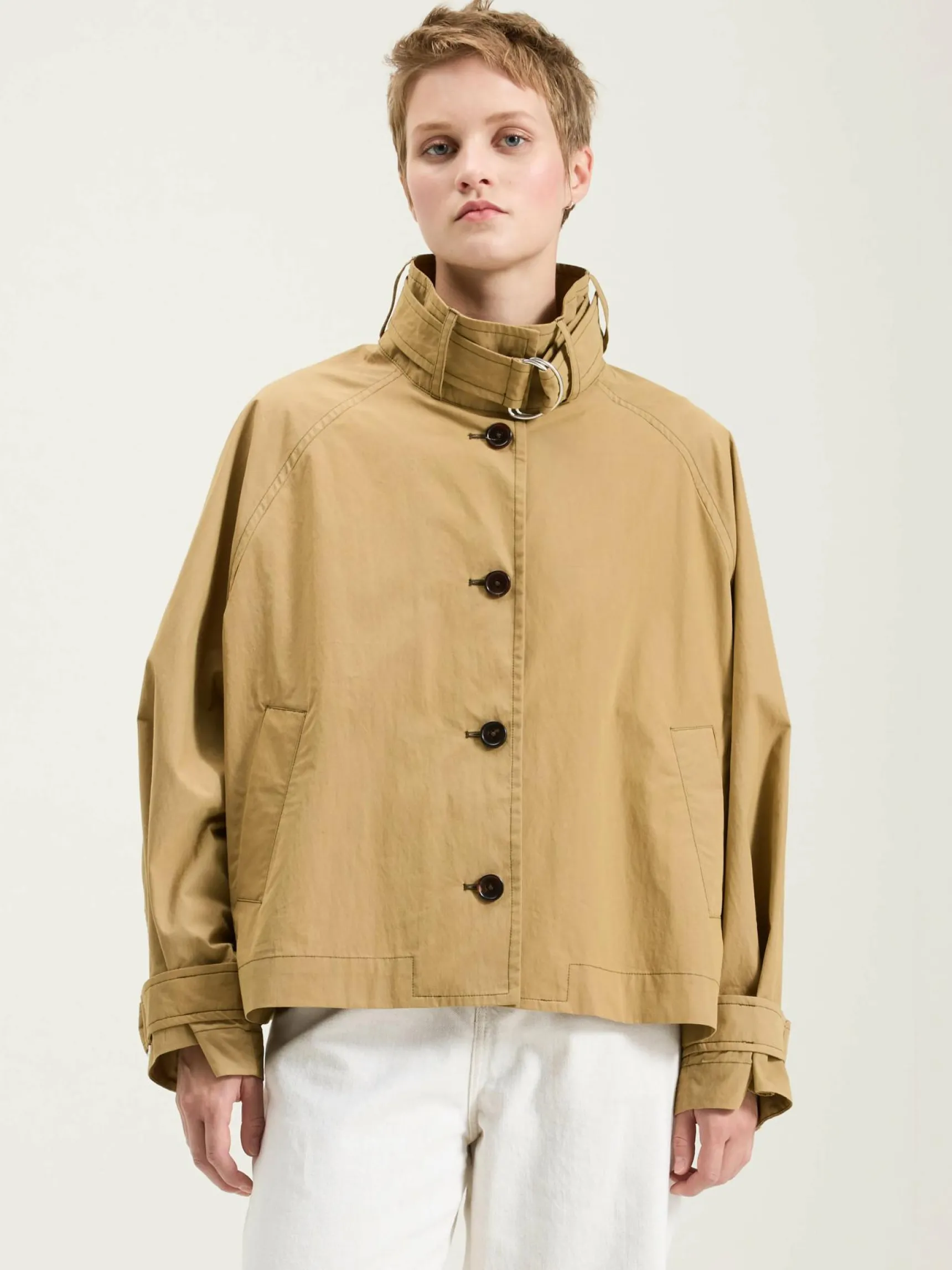 Korte, oversized jas in trench-stijl in bruin, waterafstotende stof.