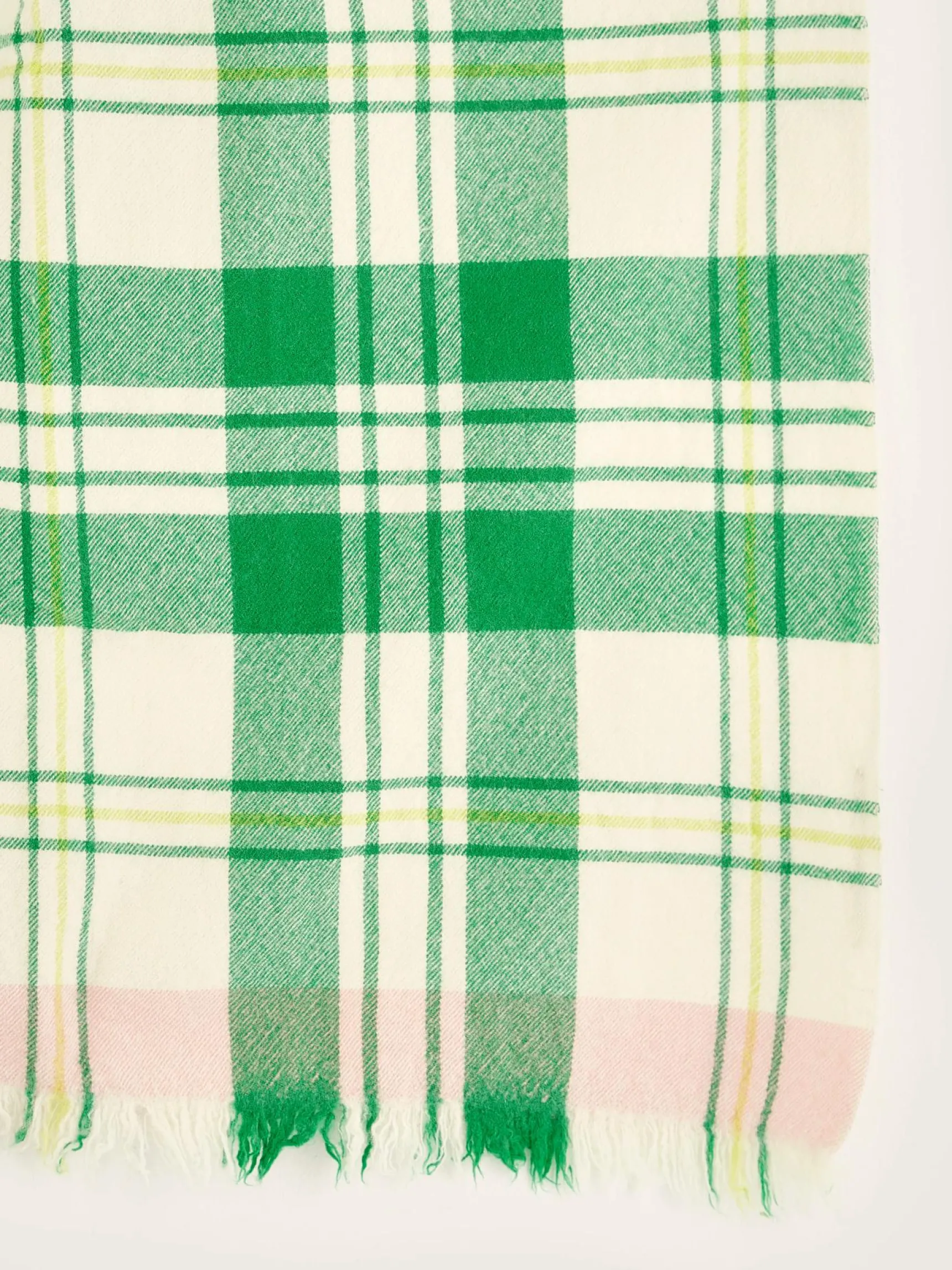 Klassiek geweven wollen sjaal met lichtbeige en groene ruiten.