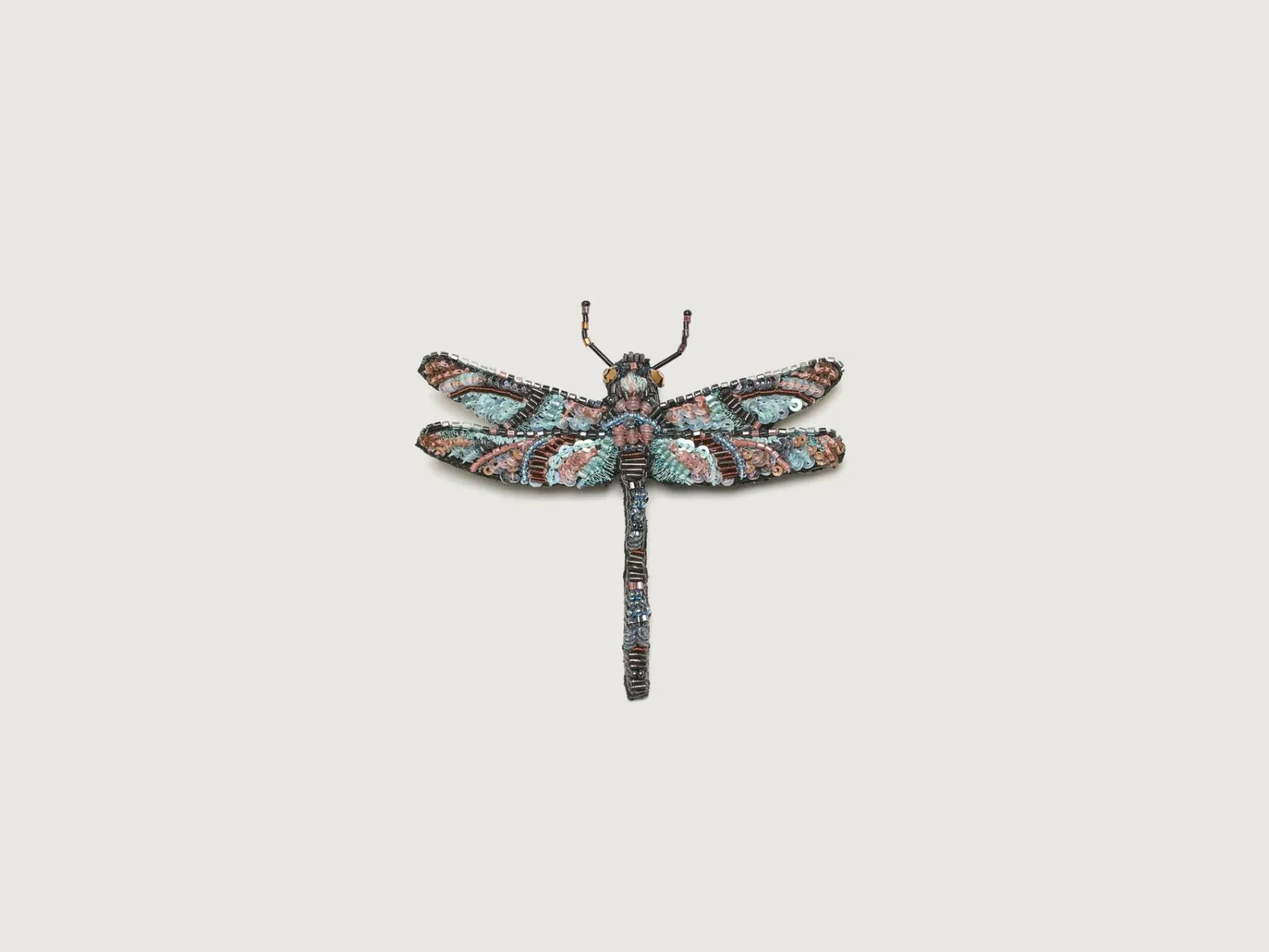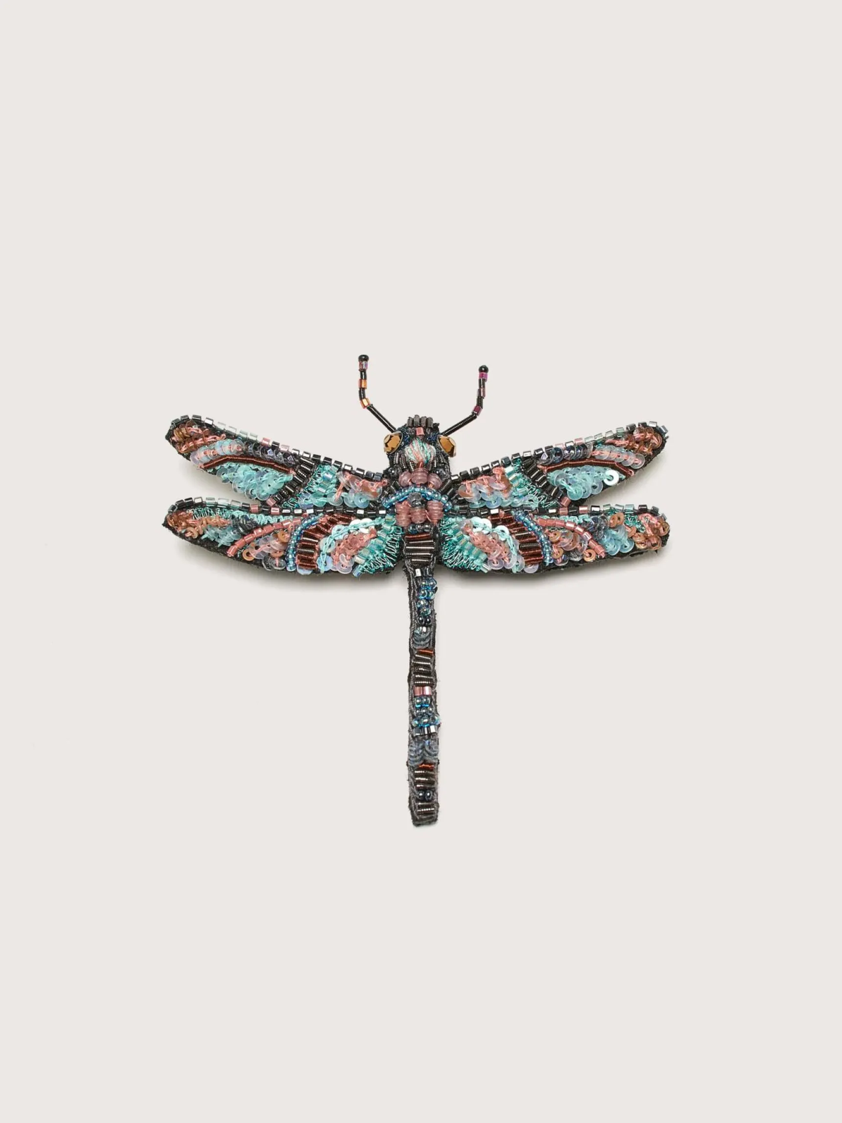 De Trovelore Jeweled Dragonfly Broche speld, met de hand geborduurd door Indiase ambachtslieden, is een prachtig draagbaar kunstwerk.