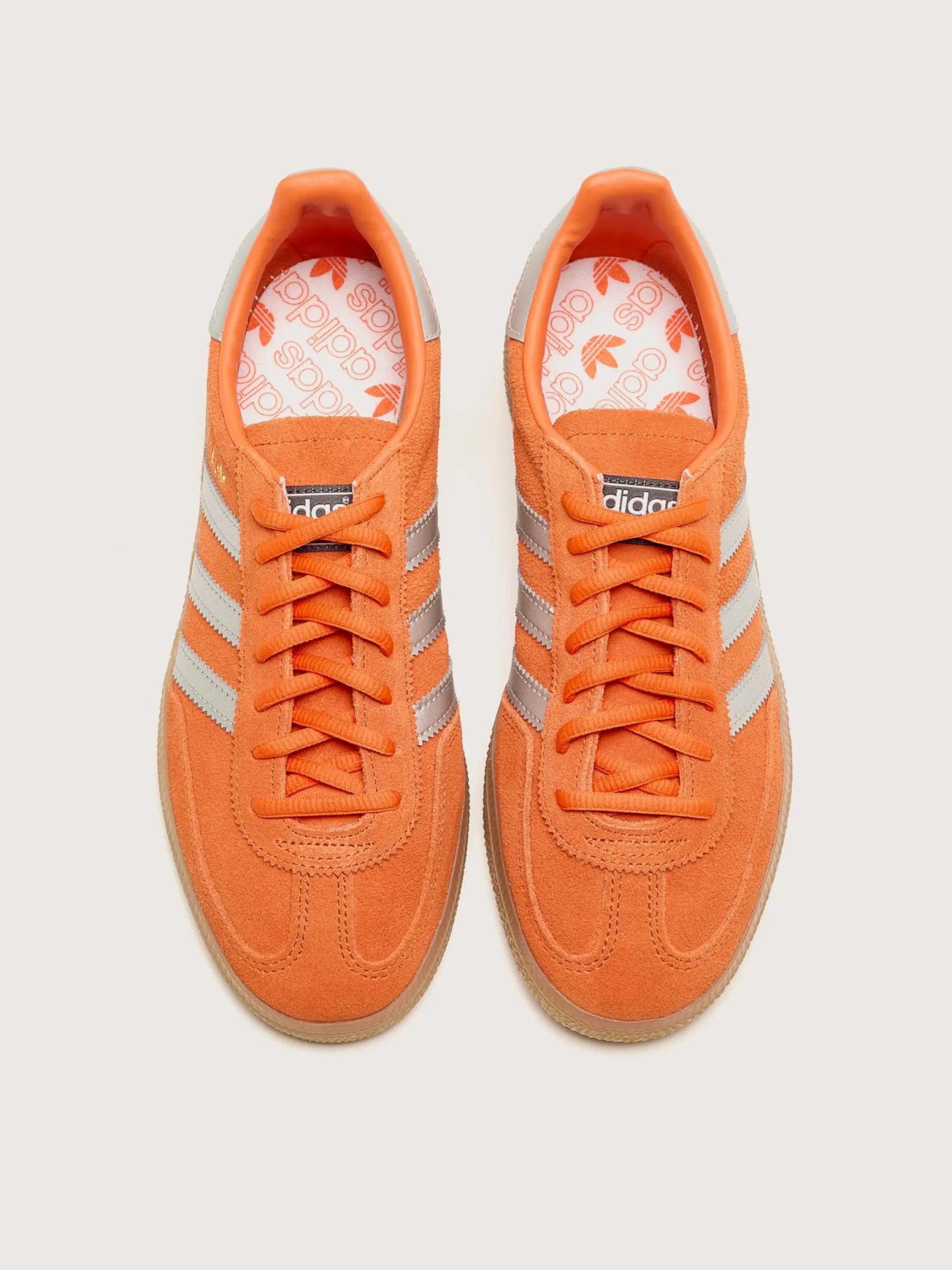 De low-profile Adidas Handball Spezial sneakers hebben een premium suède bovenwerk, opvallende details en een T-neus.
