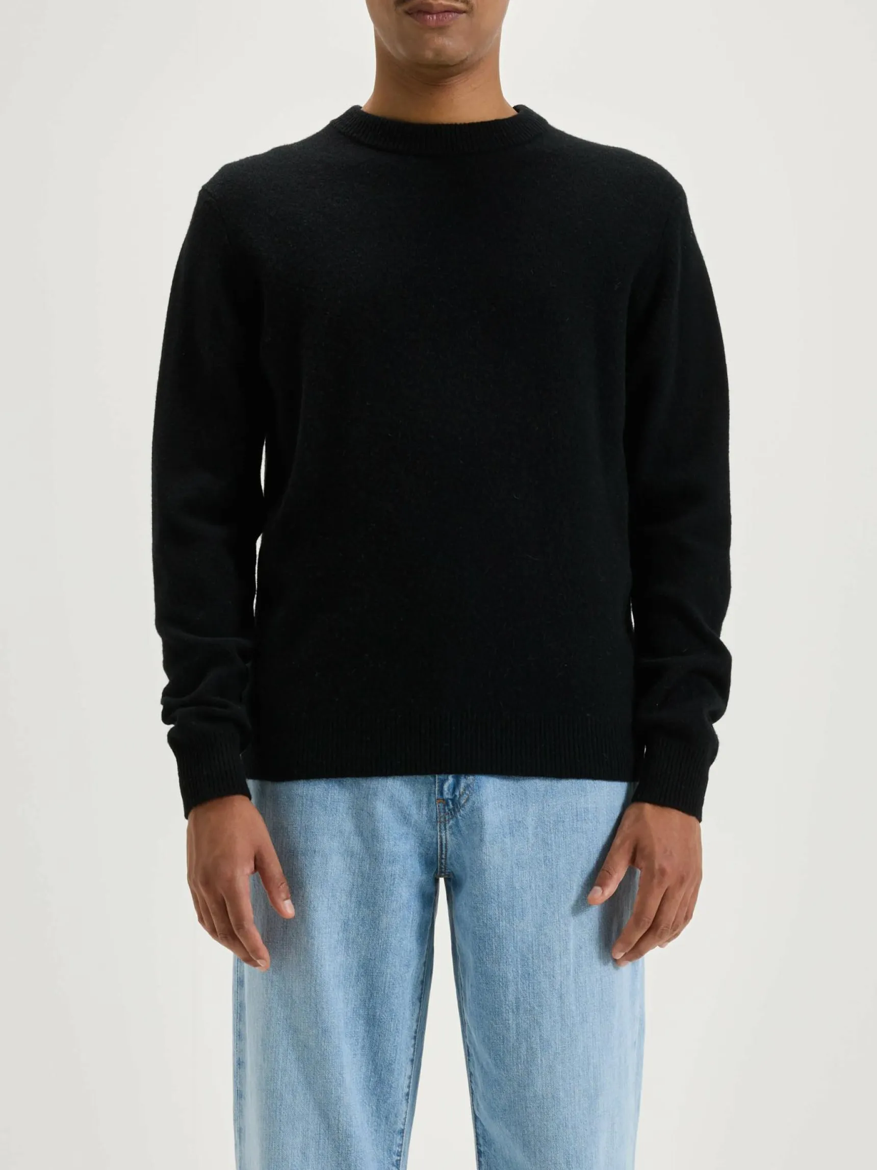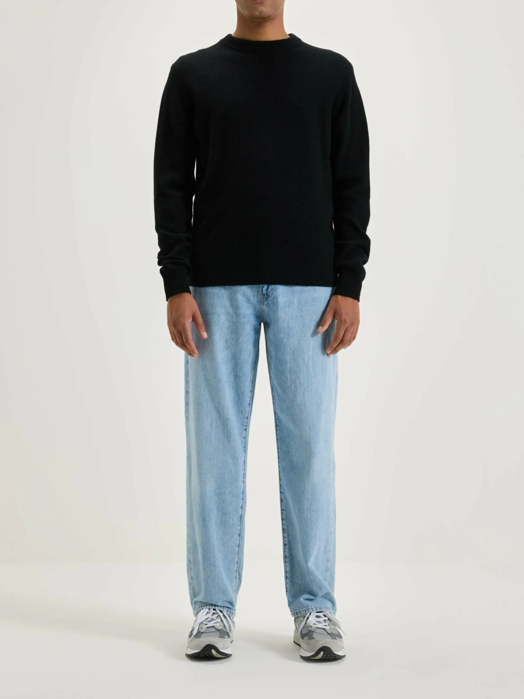 Klassieke, zwarte sweater met ronde hals, van merinowol.