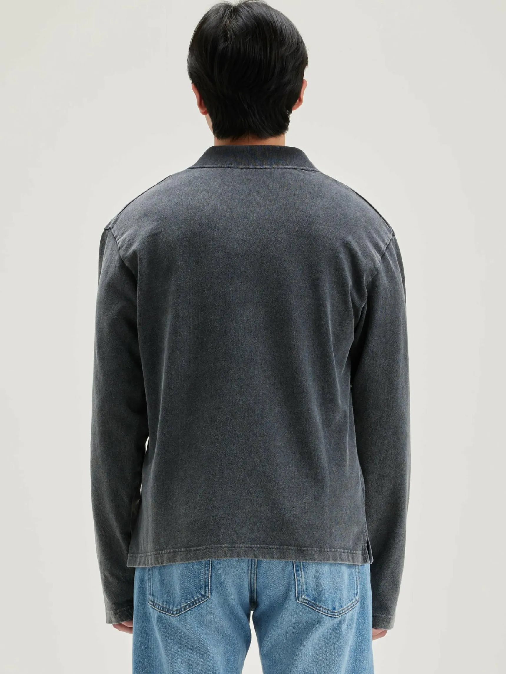Comfortabele polo van zwartblauw gewassen katoen.