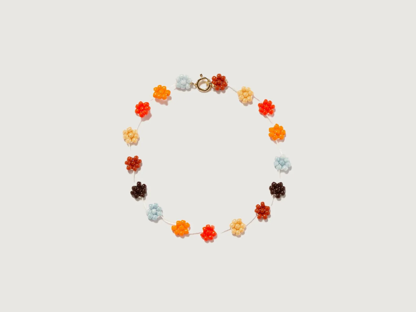 - Multi-colored flower necklace made of glass beads