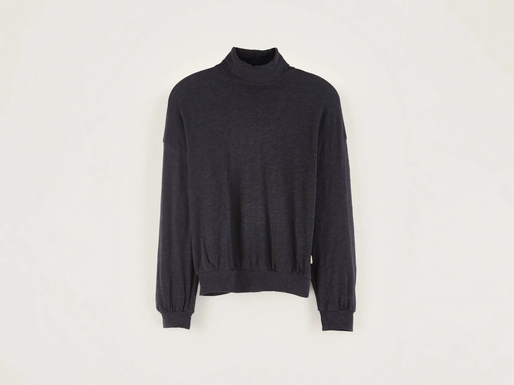 Marineblauw, comfortabel T-shirt met lange mouwen en een rolkraag.