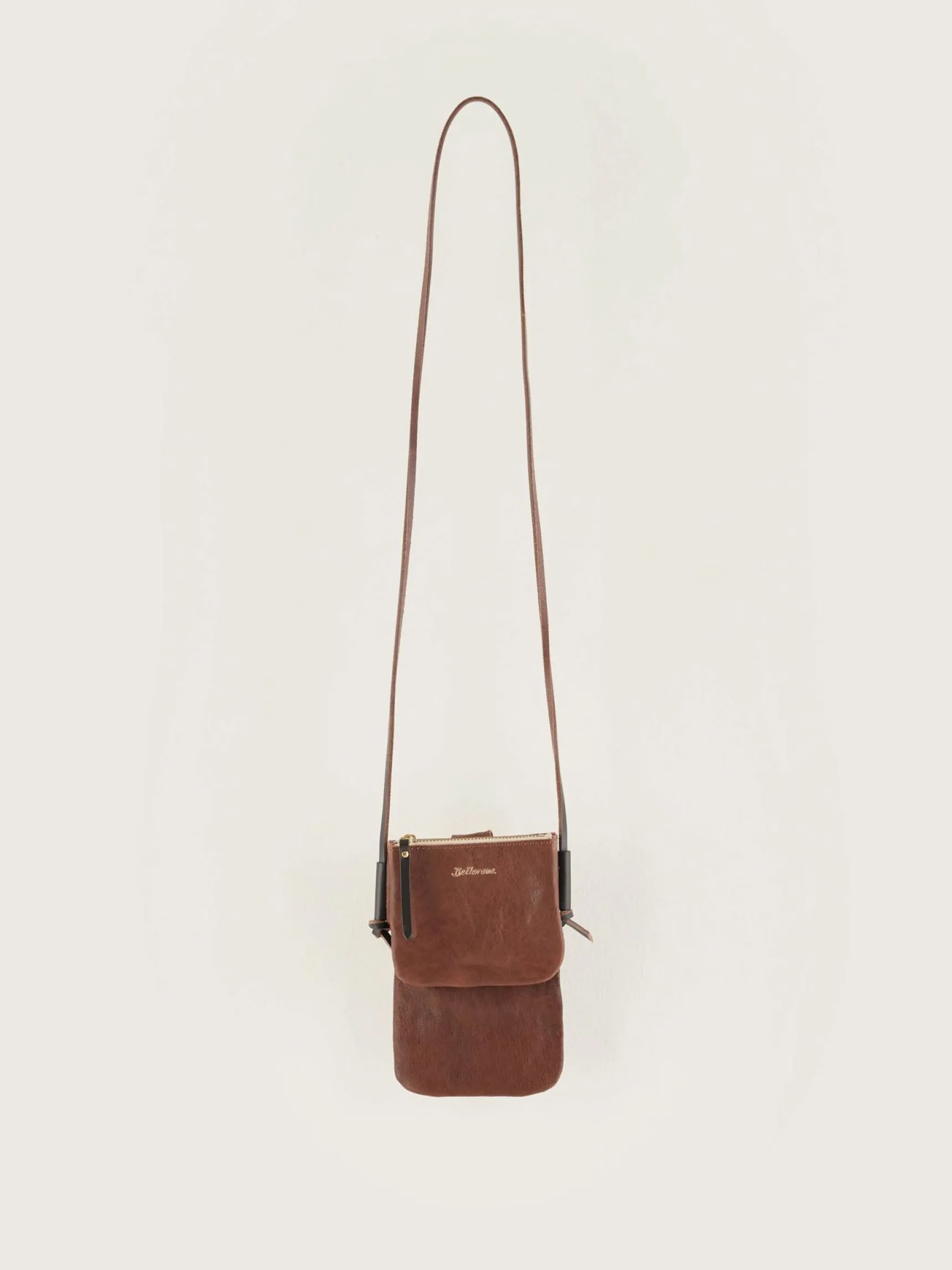 Bruin minitasje van gewassen leer.