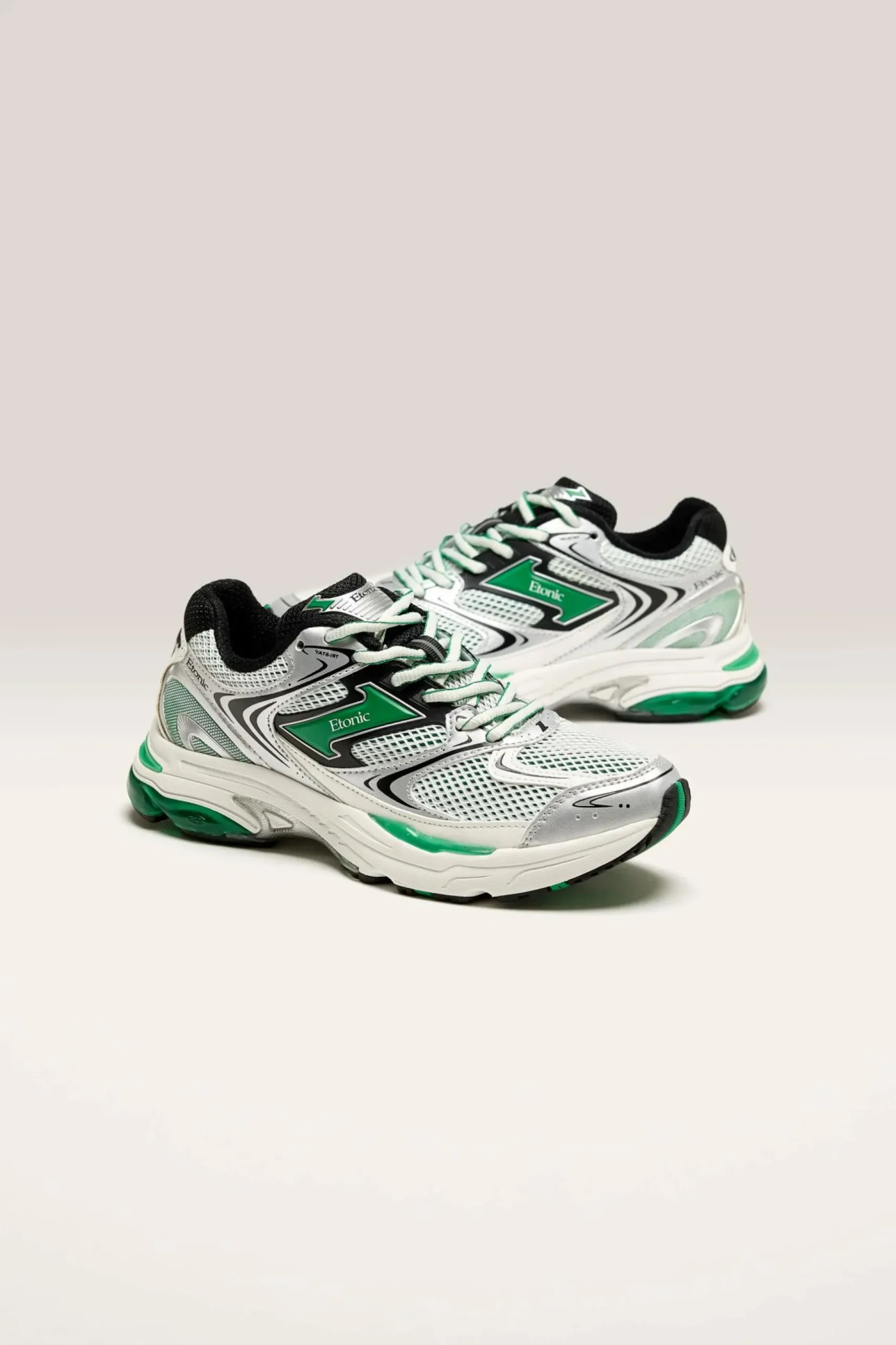 The Etonic Evolution sneaker has a technical textile and mesh upper, tonal laces, and a durable rubber outsole designed for running.