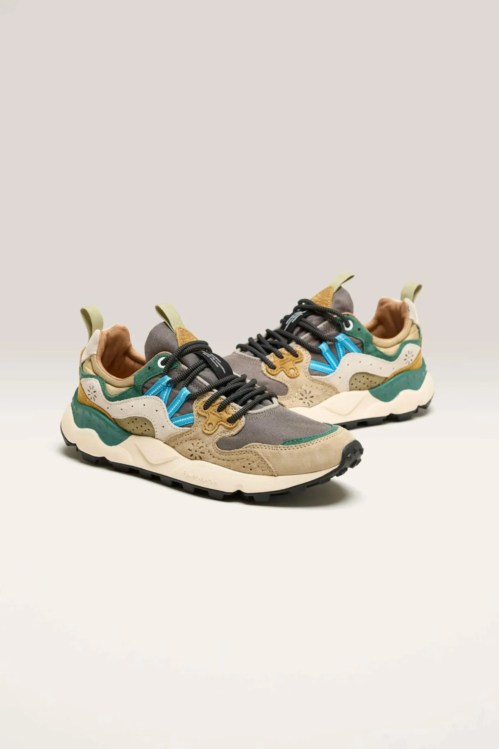 De Flower Mountain YAMANO 3 wandelschoenen hebben een bovenwerk van technisch suède en mesh, wandelveters en een ultralichte rubberen zool.