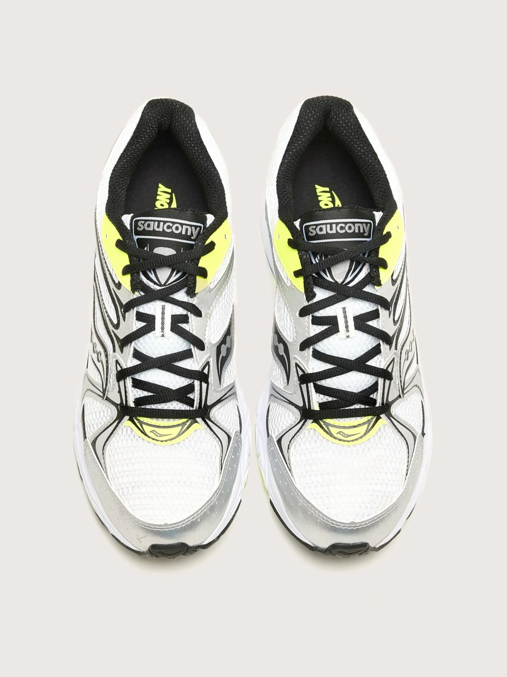 The Saucony Grid Ride Millennium everyday sneaker features grid cushioning, mesh, and metallic details.