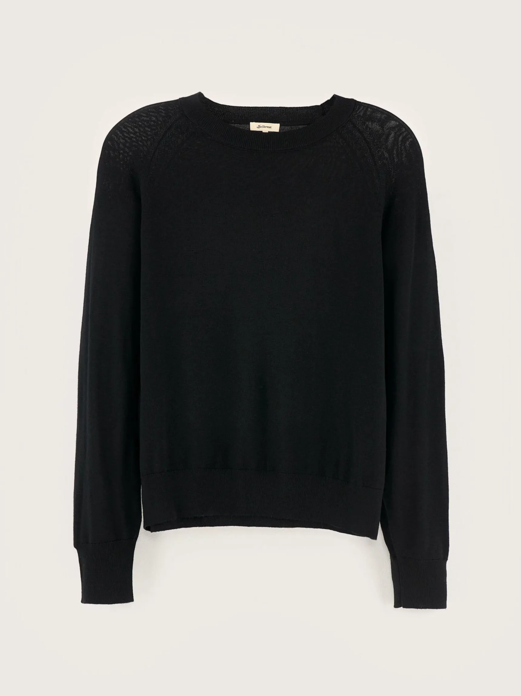 Klassieke, marineblauwe trui van merinowol, met zadelmouwen.