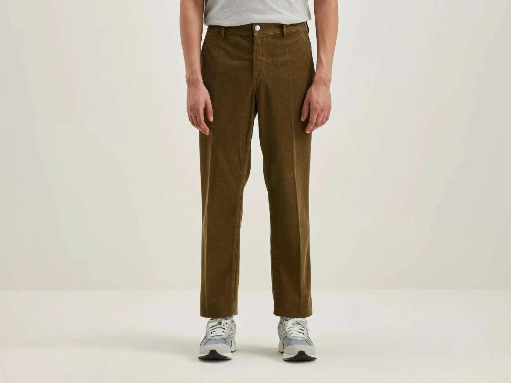Regular fit, broek met rechte pijpen, van kakigroen baby corduroy katoen.