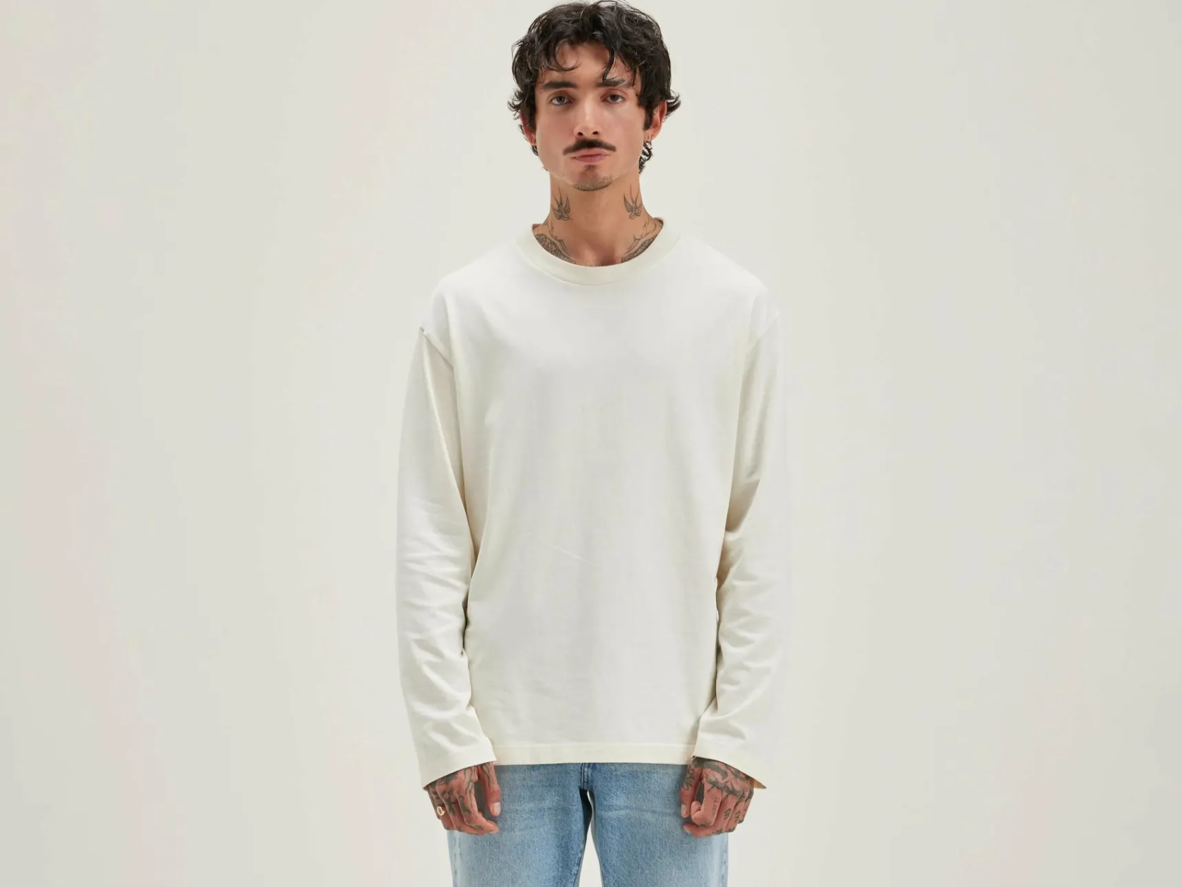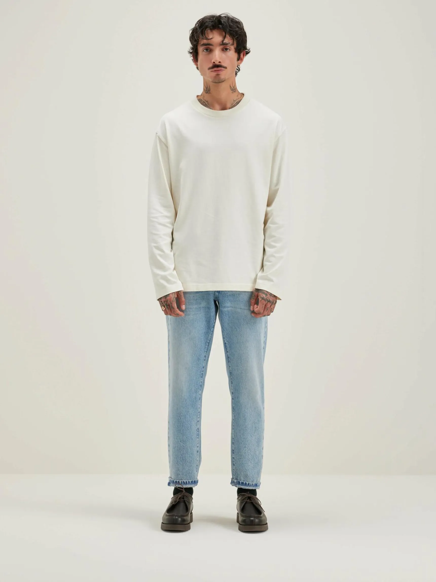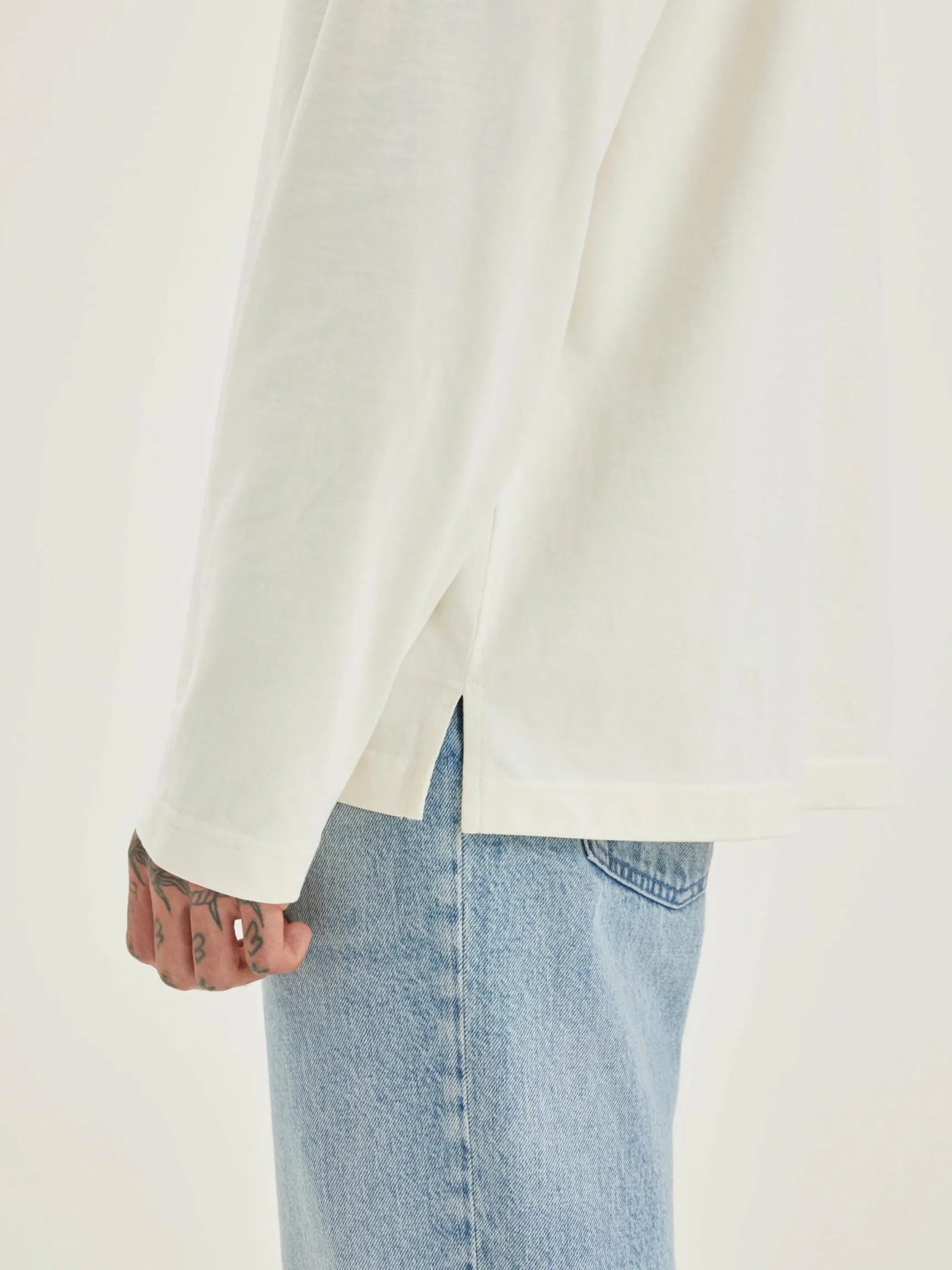 Relaxed fit, sneeuwwit T-shirt met lange mouwen van zware katoenjersey.