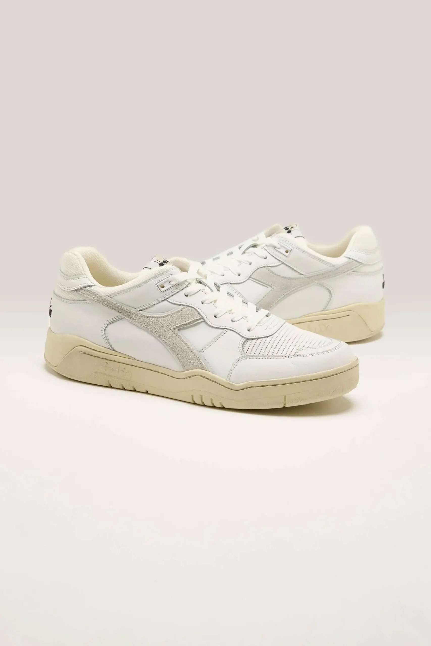 De low-top Diadora B. 560 Used retro op tennis geïnspireerde sneakers hebben een bovenwerk van volnerfleder met een stonewash en wax behandeling.